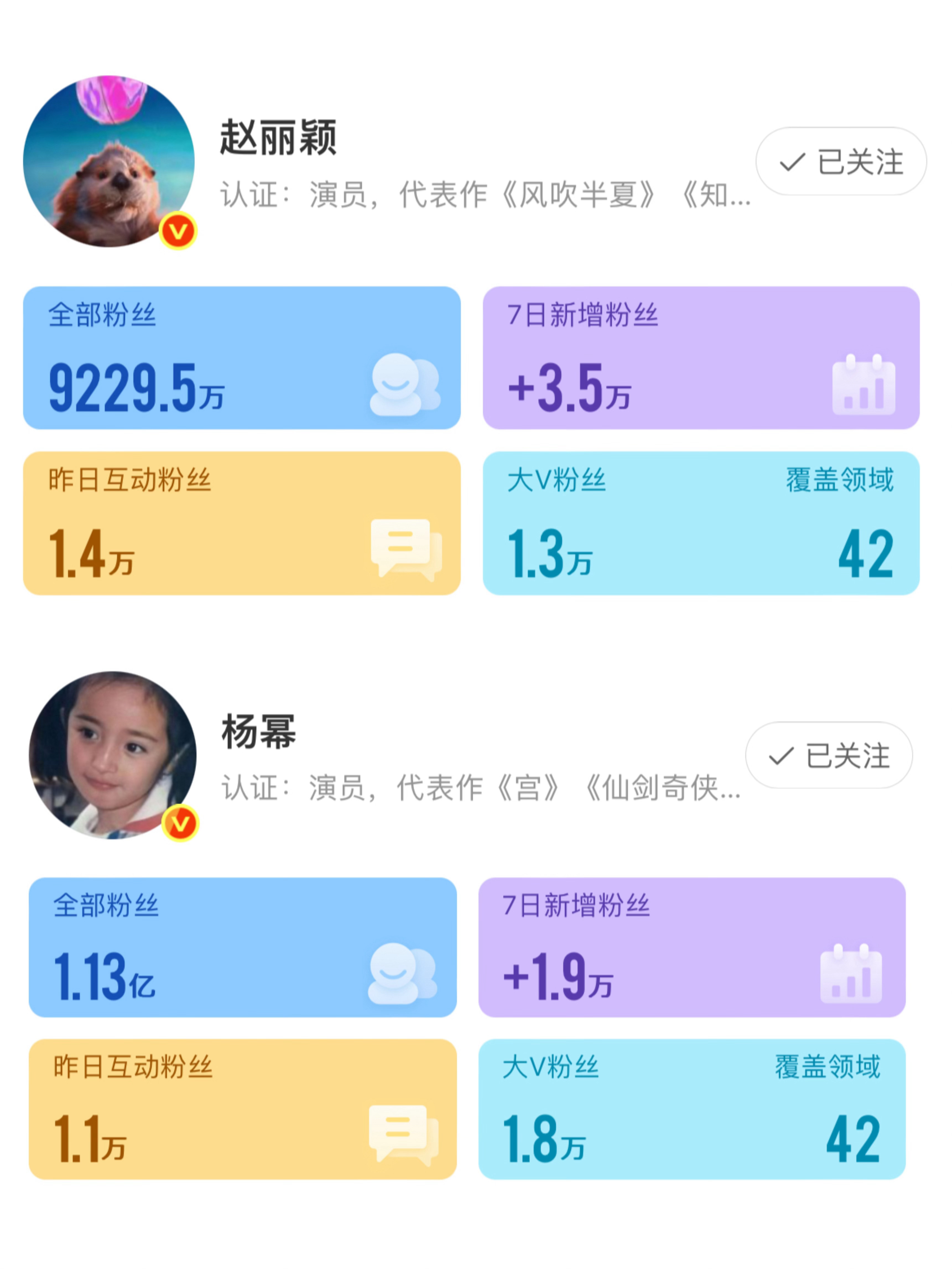 赵丽颖只要出来就涨粉,活粉多,杨幂天天营业,活粉还是少…[捂嘴哭]