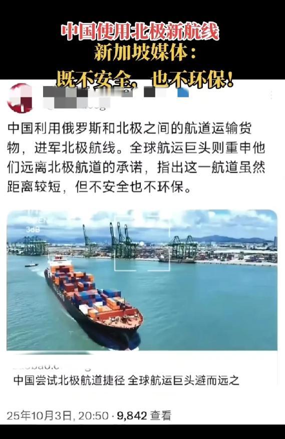 新加坡批评中国开通北极航道既不安全也不环保!我觉得大家应该知道新加坡为什么对北极航道这么气急败坏,因为北极航道会让中日韩减少对马六甲航道的依赖,让新加坡少赚很多钱,所以新加坡跳出来各种抹黑,其实这个世界就是这样,新闻学说的每句话都是有目的,根本不存在什么客观真实 新加坡应该好好考虑北约东扩引发的世界大战,新加坡能否保全。就算两块土地地震都有可能对抗要么断裂要么对抗隆起何况两个世界大国。 新加坡看不惯北极航道,又干不掉北极航道,才是新加坡气急败坏的心理枷锁——美国套在新加坡脖子上的灵魂枷锁,就像驶离波兰的灵魂火车一样无能狂怒,发出尖锐而脆弱的鸣叫。 对此你怎么看?