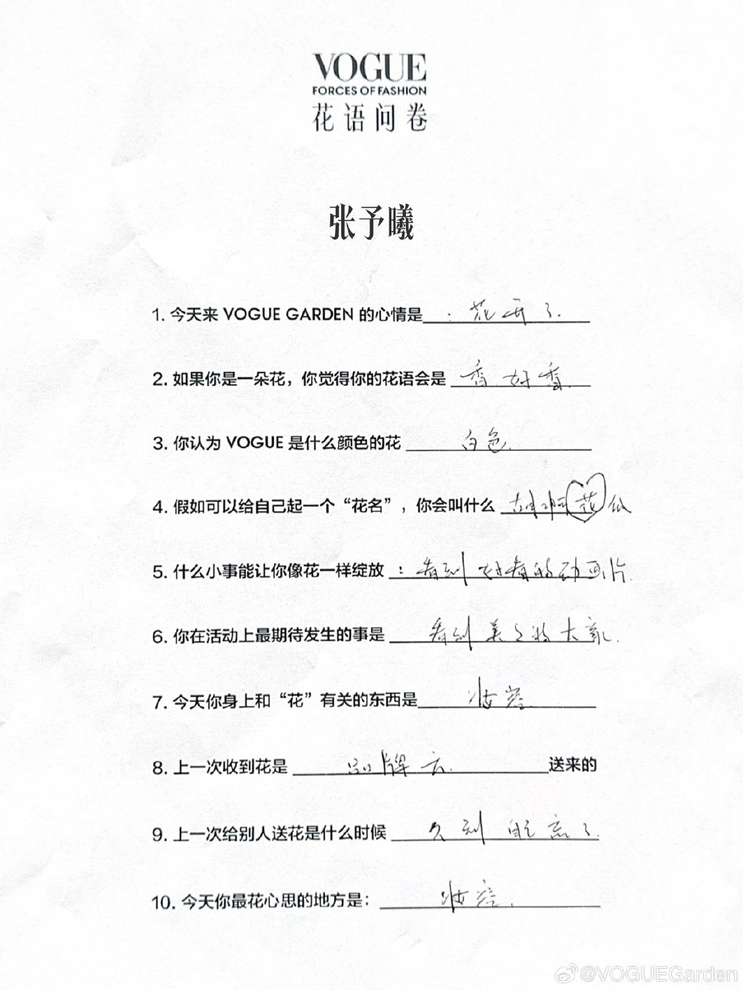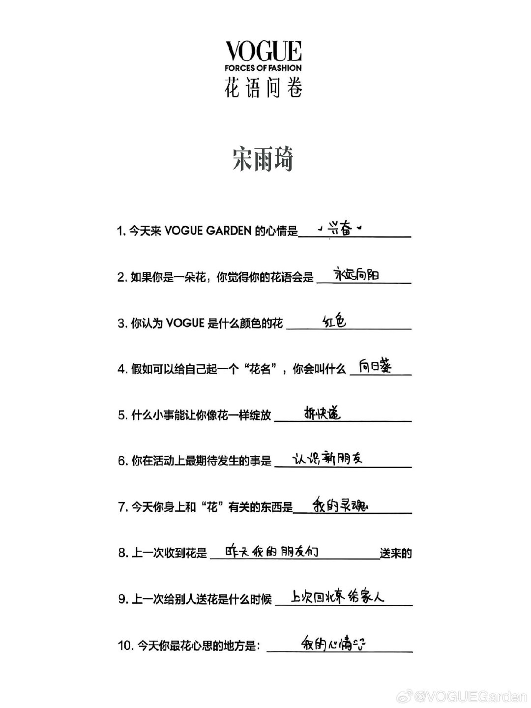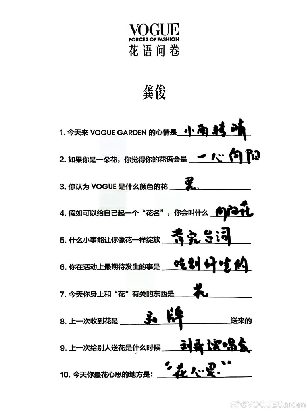 VOGUE花语问卷VOGUE花语问卷公开!刚刚vogue公开了曾舜晞、龚俊、金晨、宋雨琦、李沁、卢昱晓、张凌赫、娜扎、张予曦、钟丽缇、马思纯的花语问卷!