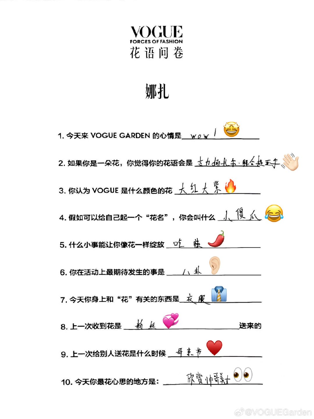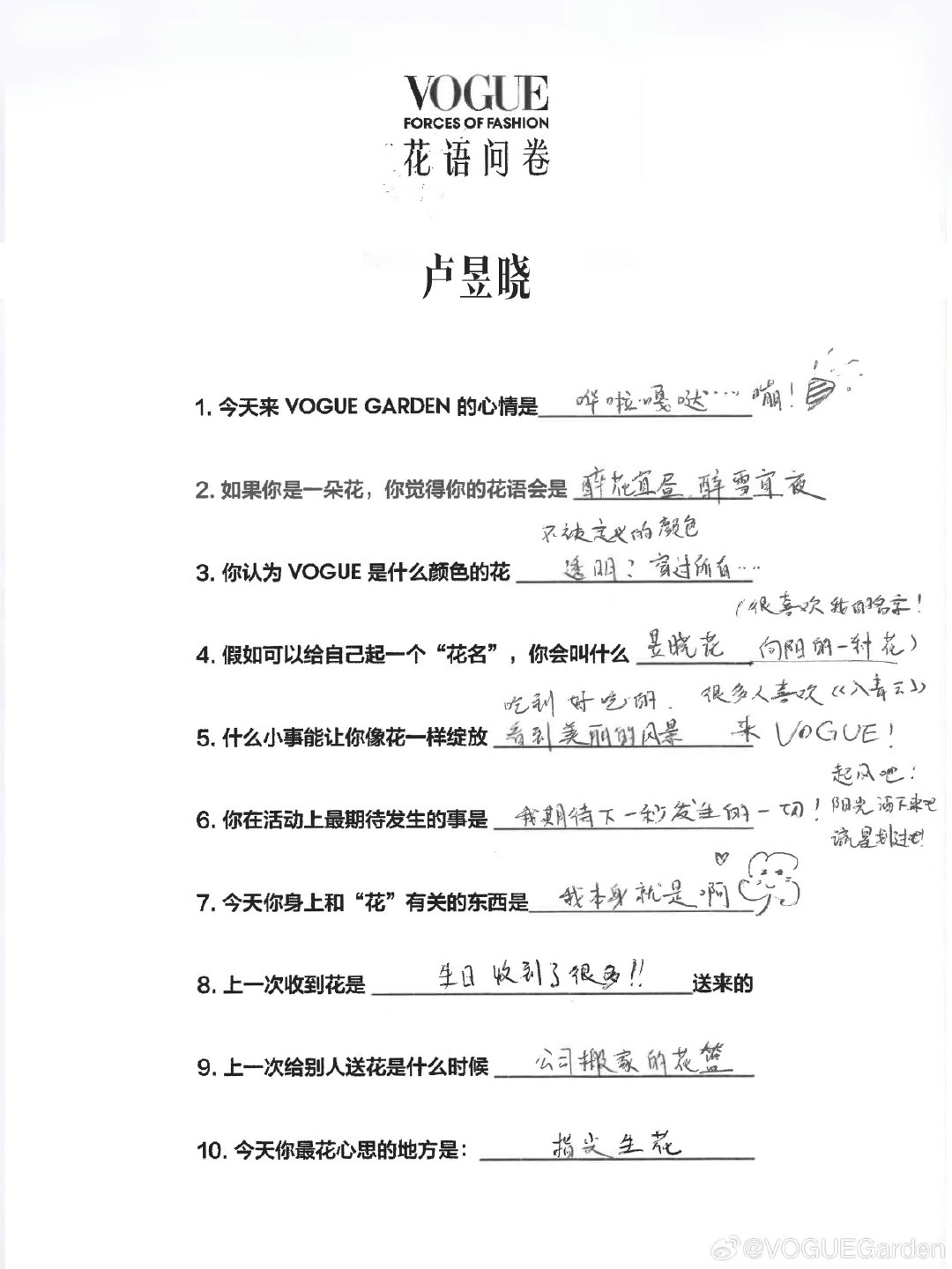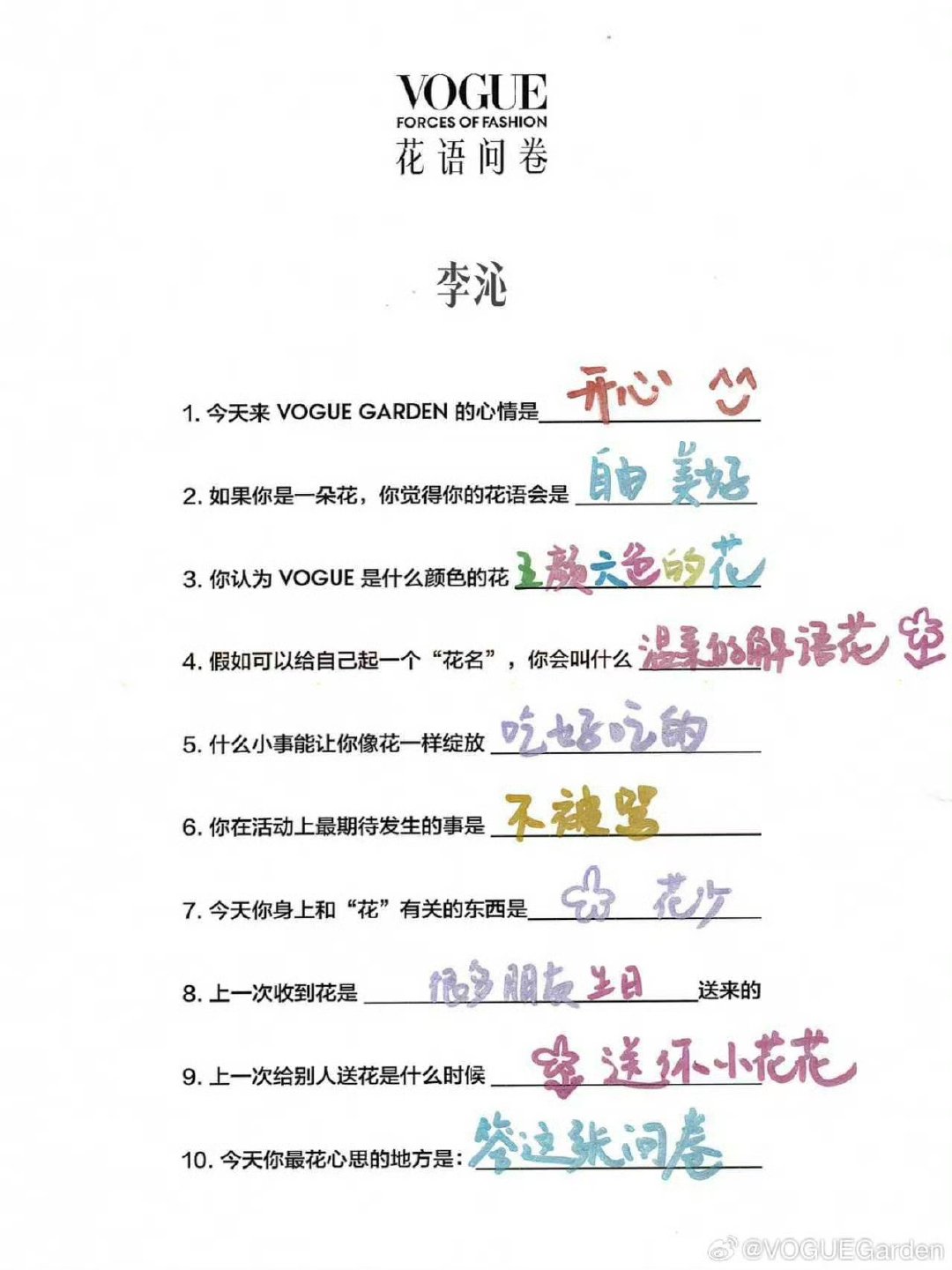 VOGUE花语问卷VOGUE花语问卷公开!刚刚vogue公开了曾舜晞、龚俊、金晨、宋雨琦、李沁、卢昱晓、张凌赫、娜扎、张予曦、钟丽缇、马思纯的花语问卷!