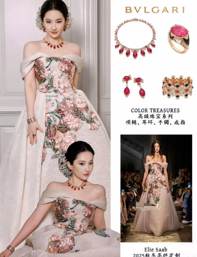 今天亮相的她穿Elie Saab高定粉裙,轻盈得像春天的花瓣,配宝格丽珠宝不抢风头,