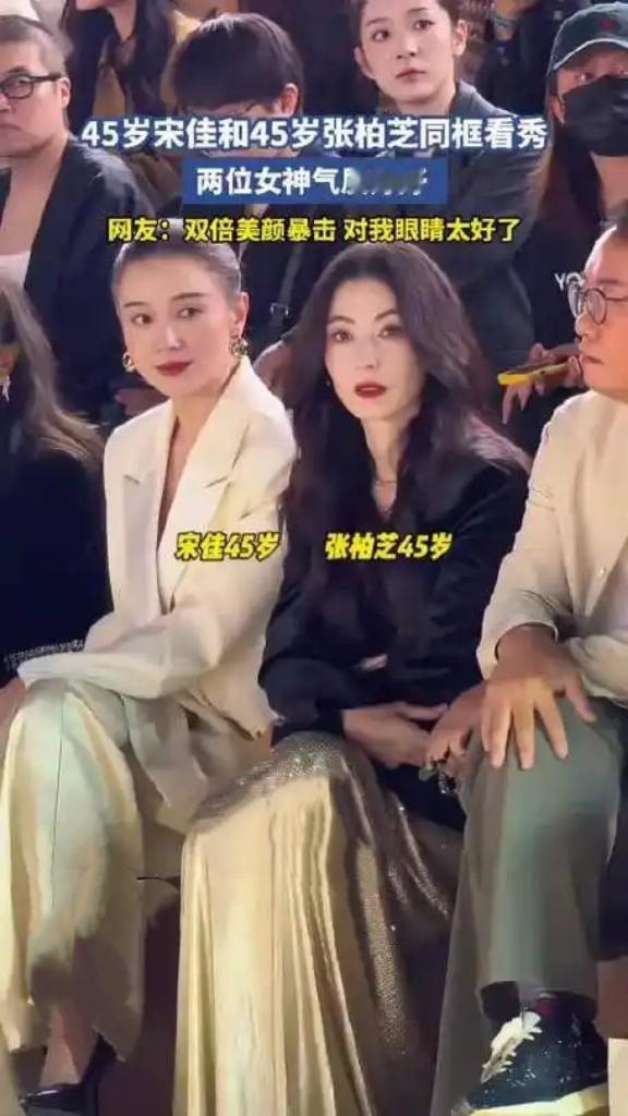 朗姿大秀直接地震! 45岁宋佳和张柏芝同框对打,简直就是骨相派和皮相派的世纪对决! 45岁张柏芝和45岁宋佳站在一起,我才终于明白:皮相易老,骨相长存! 宋佳以白色西装造型亮相,张柏芝则以黑丝绒西装搭配亮片裙登场,两位女星展现了不同风格的优雅与飒爽气质。 您觉得骨相美和皮相美谁更抗老?张柏芝 宋佳