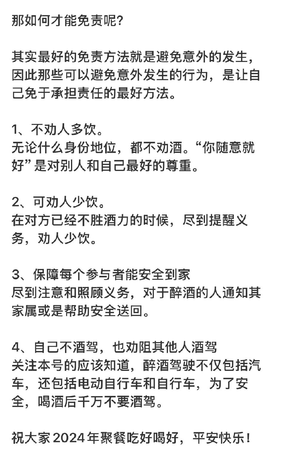 同桌喝酒一人死亡,有人全身而退,有人赔光积蓄,差别竟在这一步。 饭局喝酒喝出人命,河南这起案子给爱喝酒的朋友们提了个大醒。 四人约着去吃火锅喝酒,其中一人不喝酒,早早吃了就先走了。没过多久,第二个人身体不舒服也离开了。剩下张某和杨某接着喝酒,中途饭店老板听见包间里吵了起来,还摔碎了杯子。进去一看,张某后脑勺在流血,老板忙递了纸巾帮忙止血。十分钟后,两人醉醺醺地离开了饭店。 张某一晚上没有回家,家属急着打电话联系杨某,他要么不接电话,后来干脆关机了。第二天一早,张某被人发现倒在小区门口,送医院抢救后因失血过多没有抢救过来。法医鉴定说,张某本身就有心脏病,头部受伤后失血加上醉酒,最后导致呼吸循环衰竭死亡。 家属将同桌吃饭的几人一起告到法院要求赔偿。法院判了,吃饭先走的两个人没责任。第一个人不喝酒,走得早,没法阻止其他人继续喝酒。第二个人虽然喝了点酒,但是他没有劝酒,离开时张某和杨某都没有异常,也管不了后续的事。 杨某就不一样了,他看着张某头部流血,却没有送他去医院救治,还拒绝沟通不接家属电话,导致了错失救治的机会。法院认为他没有尽到照顾、通知和护送的义务,要担55%的责任,赔偿52万元。 我得说,酒局上的责任不是瞎担责的。关键得看你有没有尽到喝酒之后该尽的义务。别人出事了你不管,那么你就得承担后果。这事儿你怎么看?饮酒致死 酒后致死 喝酒死亡赔偿 学生不幸身亡 喝酒坠亡 同学离世 同事悲剧 聚餐猝死 信息来源:红星新闻