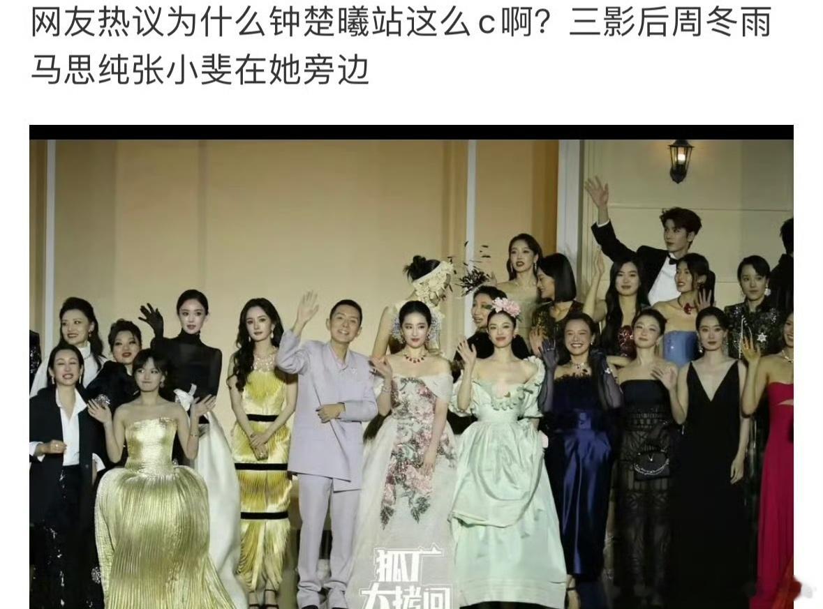 vogue盛典大合影钟楚曦站位被热议!周冬雨马思纯张小斐三位影后都站在她旁边你怎