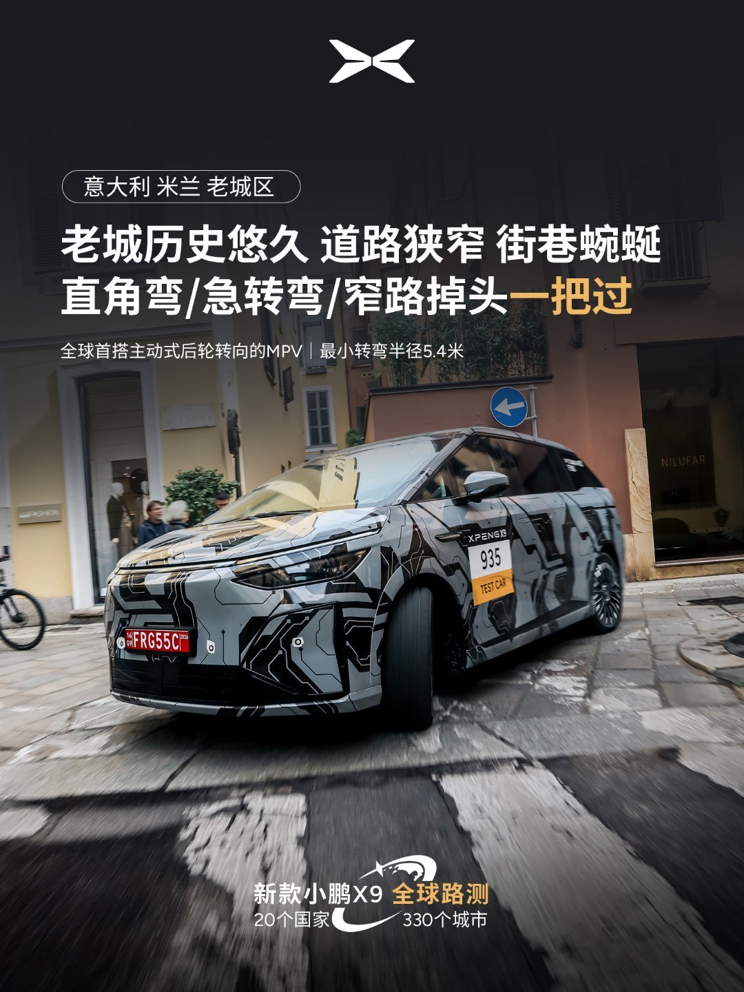 小鹏X9米兰老城区窄路灵活胜小车 去年我们也自驾穿越米兰、罗马和巴黎老城区,三个挑战:路太窄、车位小、难充电。新款小鹏X9可是5.3米的车长,大七座也能如此灵活[哈哈][good][good]何小鹏带队全球路测新款X9