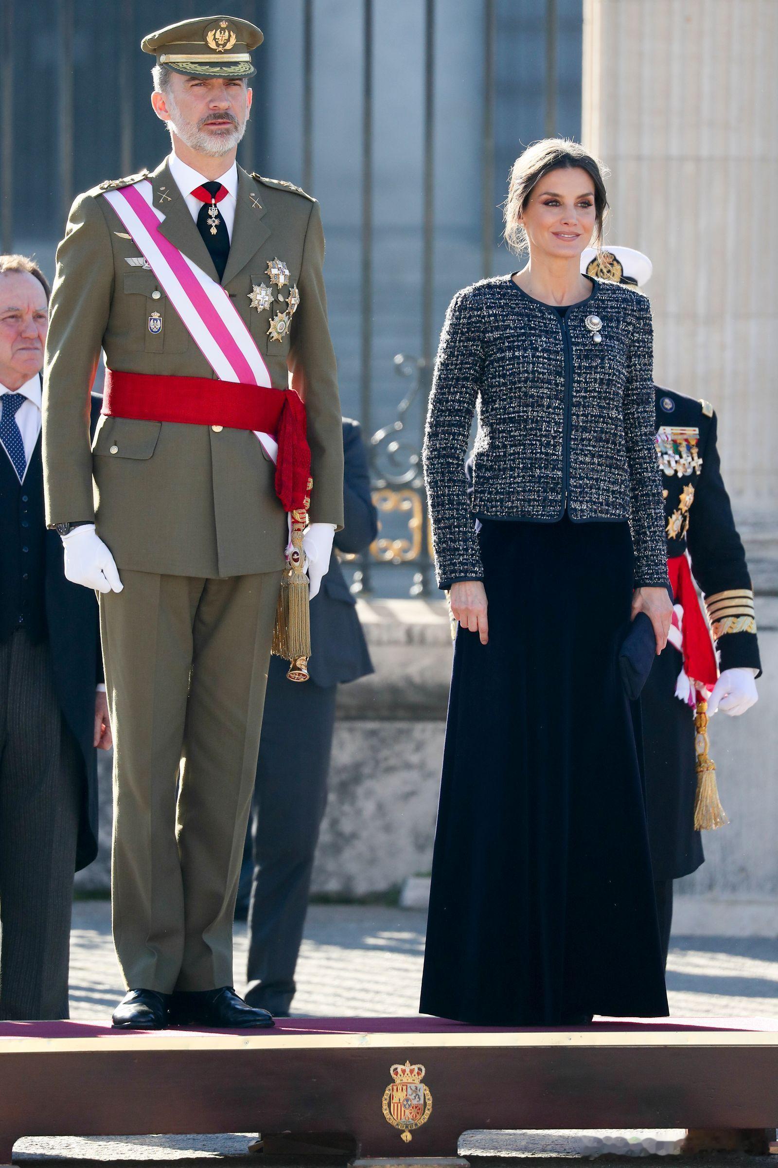 你究竟有多爱这件衣服 “长大后我就穿成了你”,图2是2019年小莱身穿Felipe Varela定制款长礼服出席新年阅兵活动(Pascua Militar),对比Emporio Armani的成衣款,Felipe Varela的定制礼服质感更胜一筹(不用看啦,小莱很难再有盘发+珠宝+定制款的行头[二哈])。
