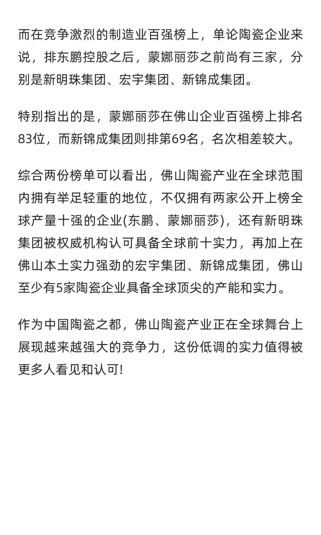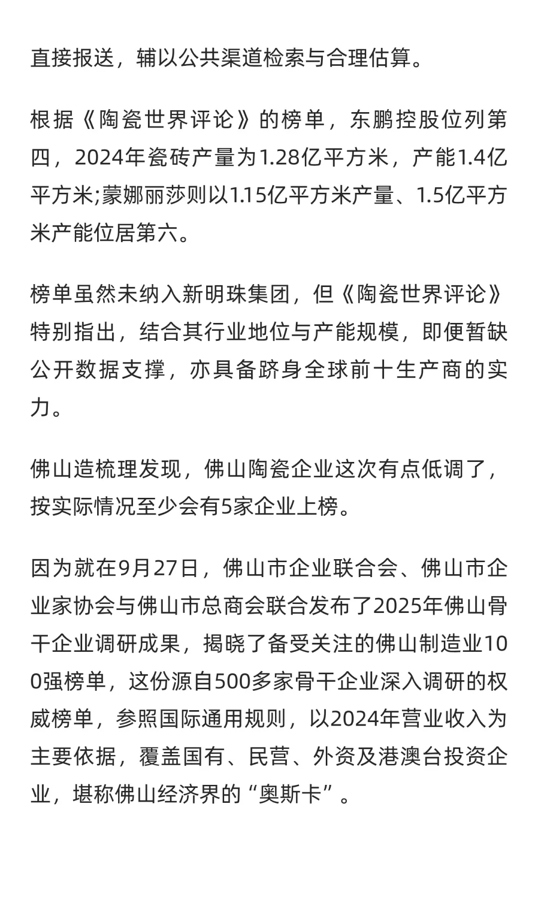 佛山2家企业上榜全球瓷砖产量10强!低调了