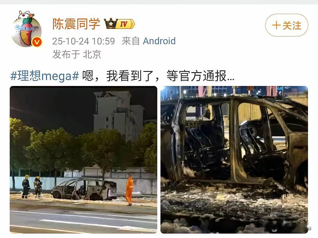 某新能源MPV起火, 陈震这次一改以往常态, 并没有对事故进行评判,而是直接说了句“等待官方通报”! 看来,就连现在的车圈大佬也不敢乱说话了!毕竟说少了人家认为你蹭热度,说多了又会被寄律师函,所以干脆不说了,等待官方消息! 对于起火的这辆MPV车型,彻底给我们上了一课,那就是安全一定最重要的!更何况MPV里面都不是孩子就是老人,如果逃生不及时被烧死了怎么办? 所以车企不需要道歉,简直细思极恐!