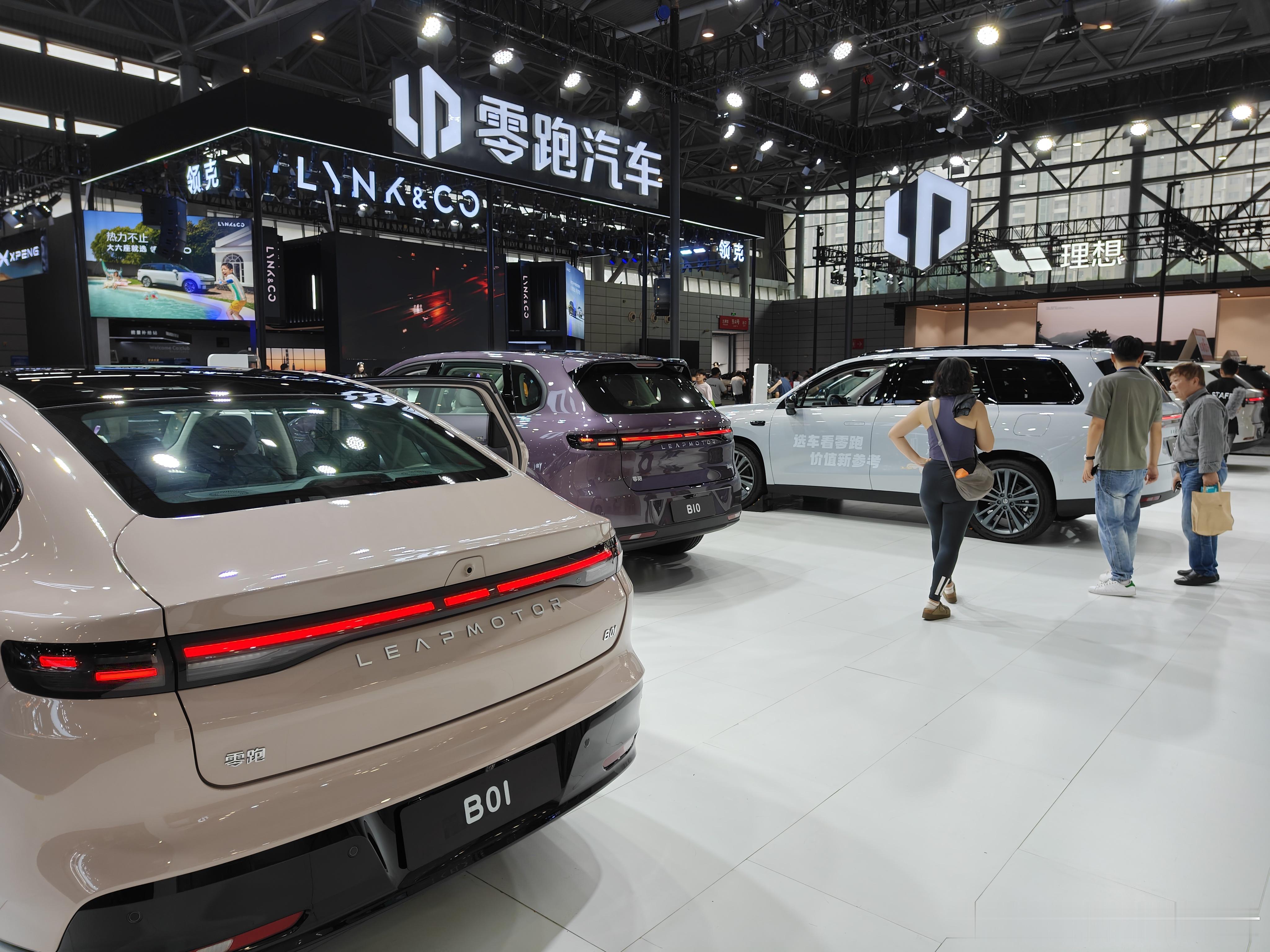零跑这次真的是用了心了,展台面积超大,车型也摆得很全。从入门级到高端系列都有,可以一次性看个够。展台设计挺简洁的,没有那种花里胡哨的装饰,整体看着很舒服。