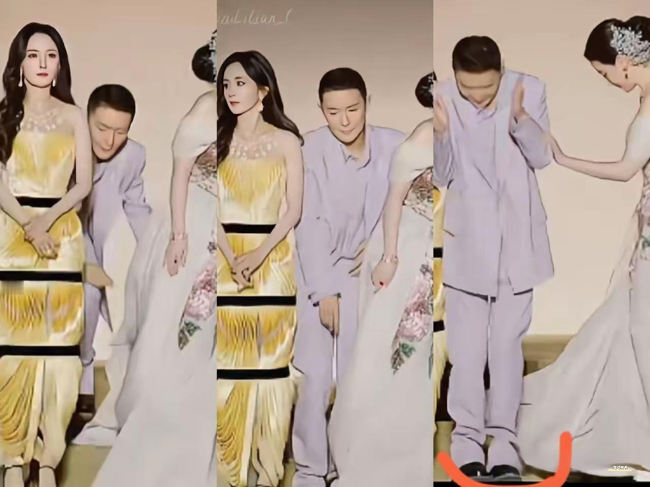 明明红毯现场是女神们争奇斗艳的主场,却被一个淡紫色男人给抢了风头。 红毯合影留念那一幕,明明都是大美女,现在中心位置的不是大明星们,却是一个淡紫色西装的男人,到底什么来头 注意到他不是因为他现在中间,而是他太好笑了哈哈哈哈。 他小心翼翼从最后一排走到前面来,就怕踩到女明星的裙子,还特意帮刘亦菲提前把裙摆推开,以为这样就万无一失了。 结果走下来的时候还是踩到了,踩的还是刘亦菲的裙子,太好笑了,然后被刘亦菲面无表情推开,那一刻,我觉得他尴尬成表情包了。。VOGUE盛典红毯 时尚视觉盛宴
