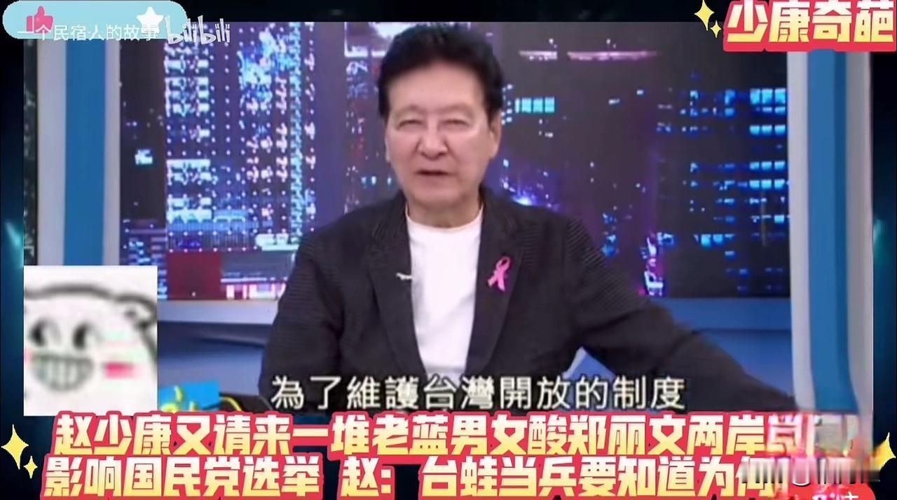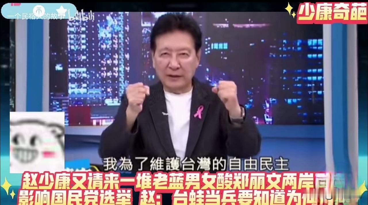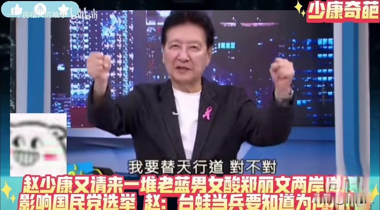 中国国民党党主席选举后,那个一直抹黑大陆被两岸网友骂的没脸见人的赵少康又灰溜溜跑出来了,还找了那么多人和他一起酸国民党新当选主席郑丽文,更开始鼓噪台湾军人怎么才能和大陆开战。 赵少康已经没救了,这些年一个劲儿黑大陆,他主持的节目也已经不称大陆而一直称中国了,他是国民党败类,新党的叛徒,台湾的三姓家奴。我们有关部门必须惩办这样的国家叛徒。