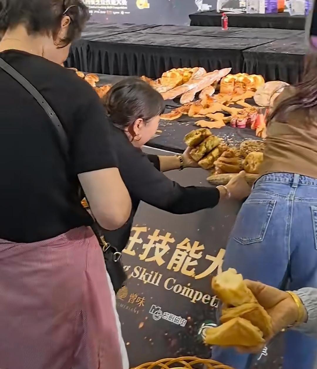 大妈们的疯狂举动,把现场的面点师都看呆了! 近日,在苏州国际博览中心,第34届中国厨师节正在举行,在展区内,用来比赛展示的面包,遭到了大妈们的哄抢。 她们完全不顾个人形象,一度把护栏都挤倒了。 现场视频被发到网上,引起了网友们的关注和热议。 有网友表示,难以置信,这可是在富裕的苏州,怎么会发生这种情况。 也有人对活动的组织方管理不到位表示质疑。 总之发生这样的场面实属不应该。