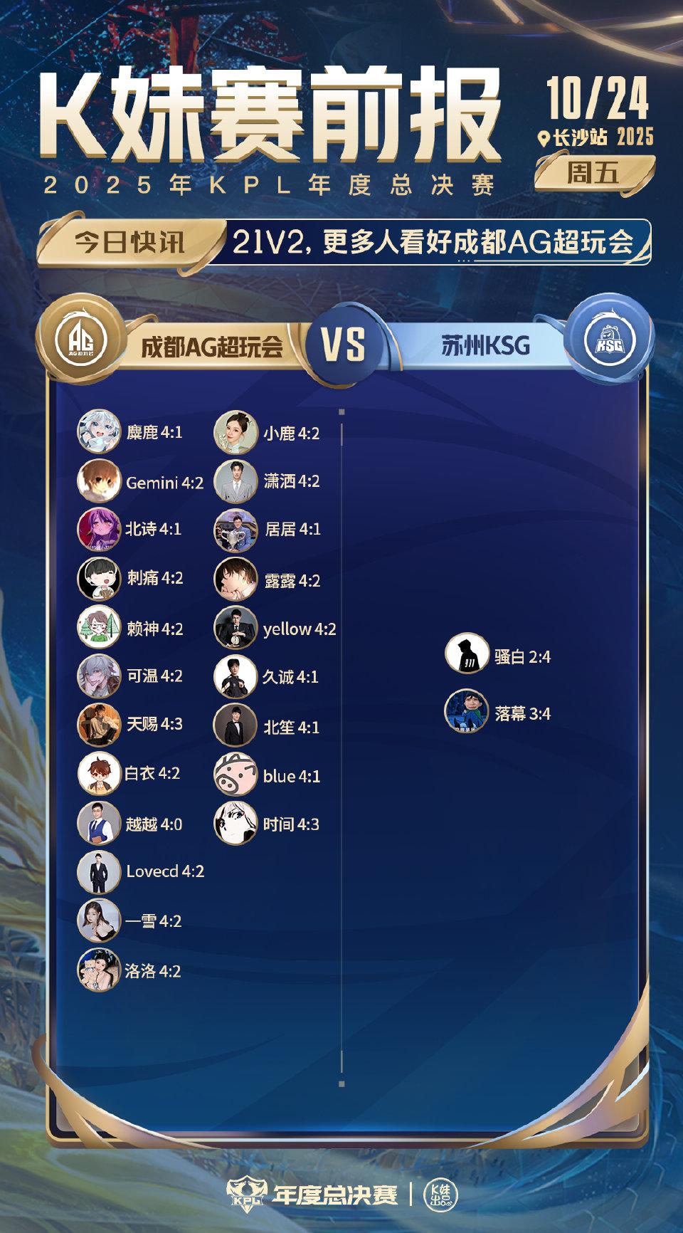 AG对战KSG:21v2,更多人看好成都AG超玩会;