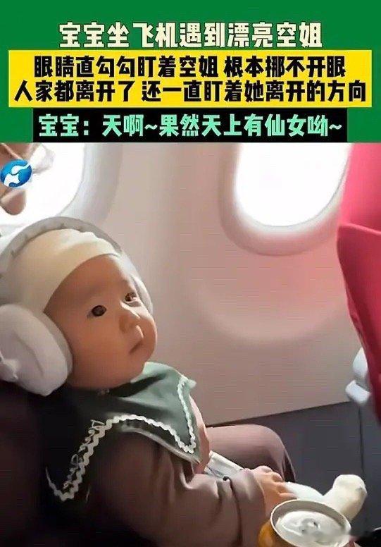 视频中,当美女空姐过来的时候,宝宝的眼神都直了,探出头来仔细看着空姐,好像要把空姐的形象印在脑子里似得。