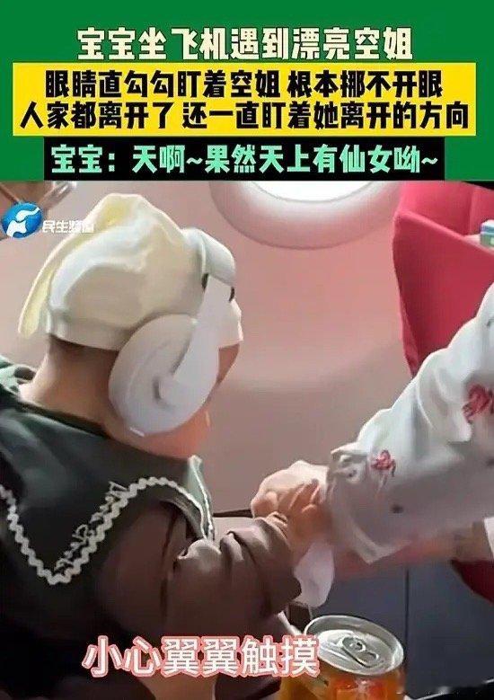 近日,广东一位网友带着自己两岁的宝宝坐飞机,在飞机上遇到了一位很漂亮的空姐,没想