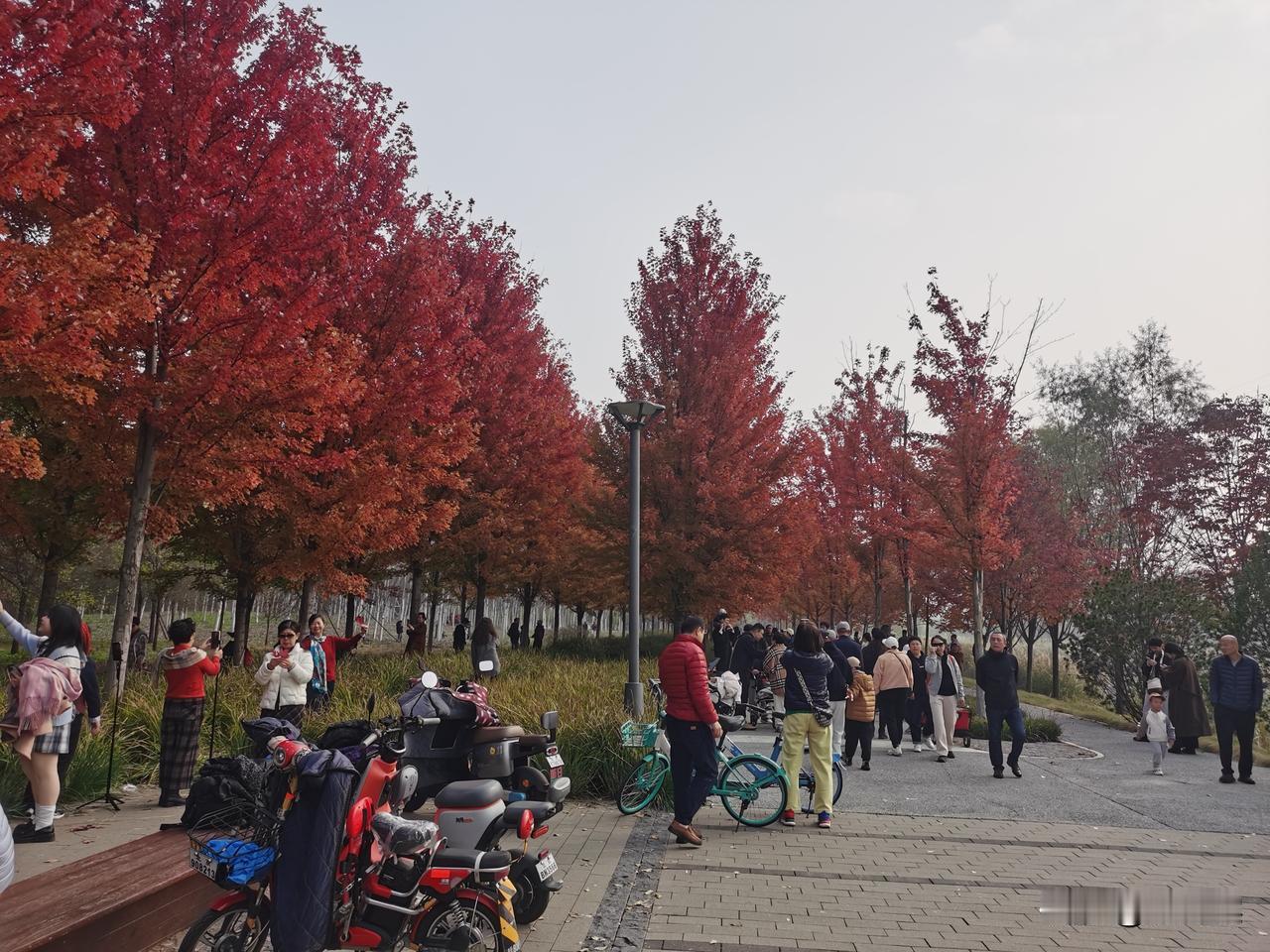 一片红叶引得如织游人,直播、拍抖音、摄影大师…… 这就是位于通州张家湾绿心城市