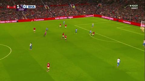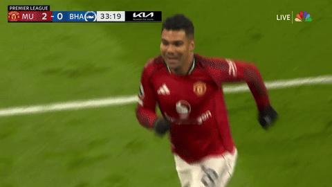 【运气球】曼联vs布莱顿,上半时32分钟,卡塞米罗远射,球打在布莱顿球员身上,发生变向后滚进球门,2-0,曼联拉开比分!
