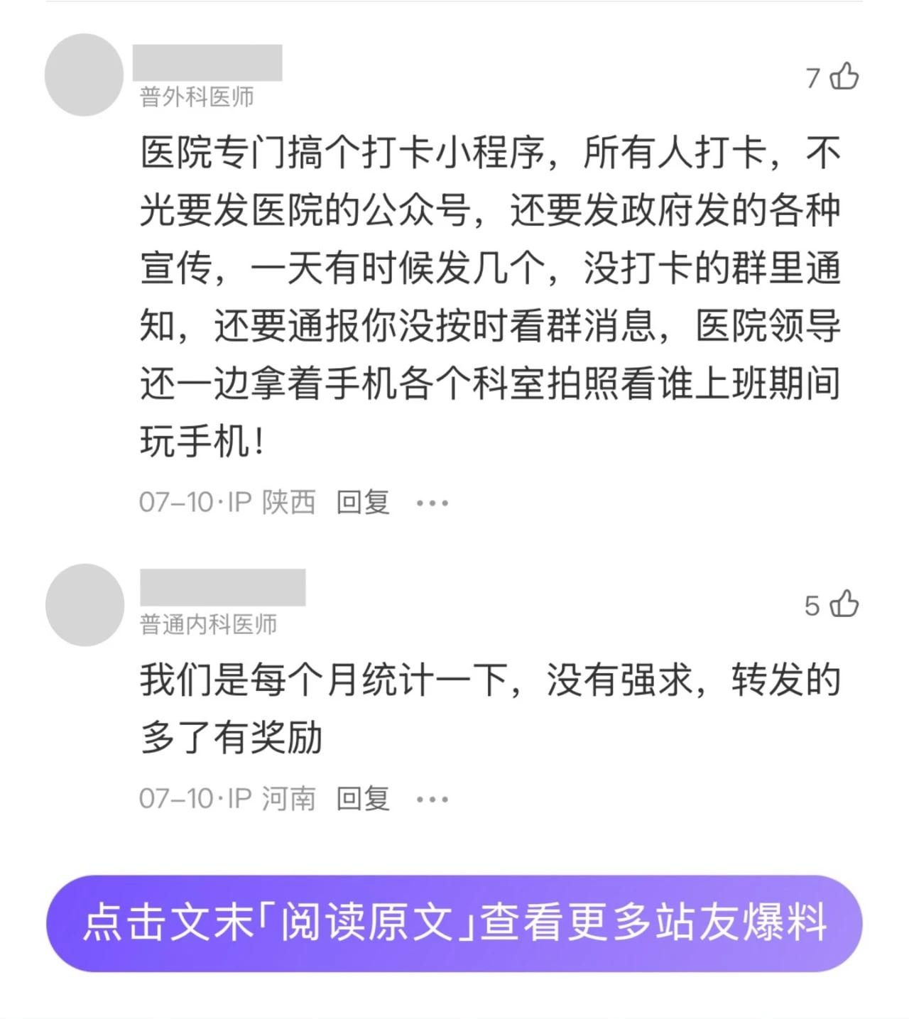 某医院行政科室下发通知,将抽查员工朋友圈转发医院公众号内容情况,未达标者扣绩效。部分医院还使用打卡小程序强制要求转发政府宣传,同时检查上班手机使用,引发员工不满。 此类管理方式将宣传任务与绩效捆绑,暴露出形式主义倾向。强制转发与禁止玩手机的规定存在明显矛盾,反映管理思维僵化。这种简单粗暴的考核方式既侵犯员工权益,又助长形式主义,实际宣传效果可能适得其反,暴露出管理能力的不足。