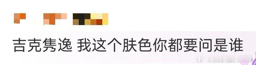 吉克隽逸 我这个肤色你都要问是谁 吉克隽逸这波回应太绝!面对“没认出是谁”的疑问,一句“我这个肤色你都要问是谁”自带气场,肤色辨识度拉满,可爱又霸气!