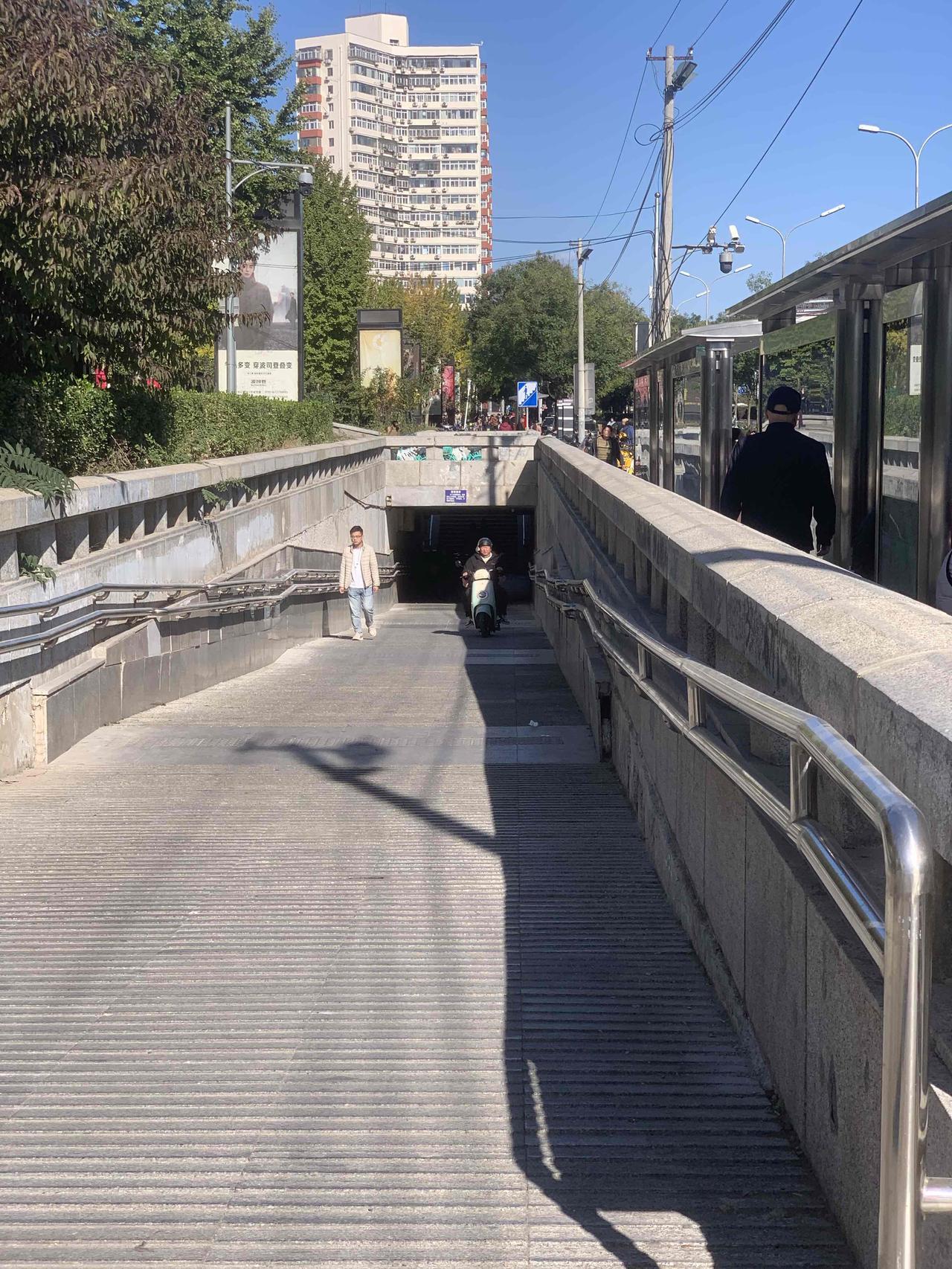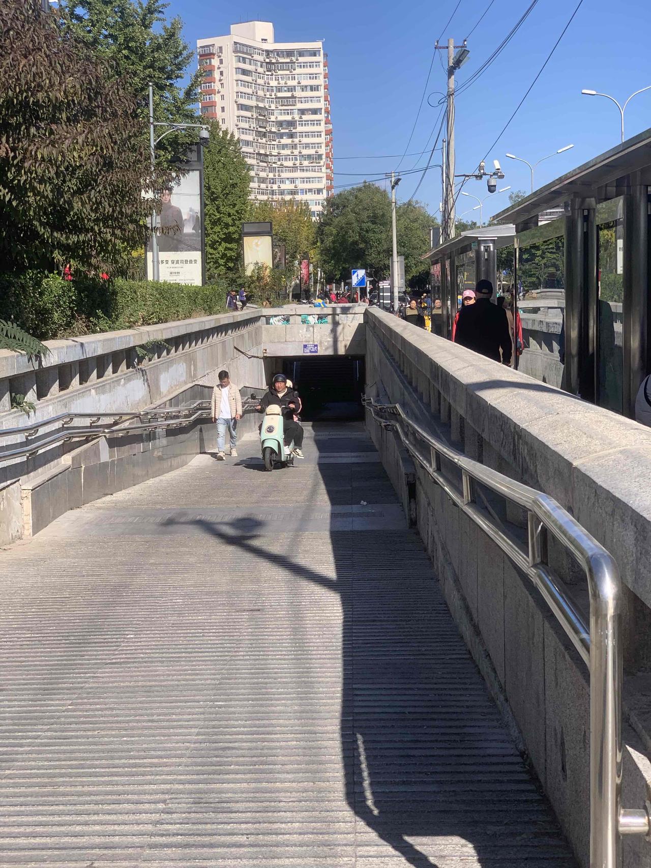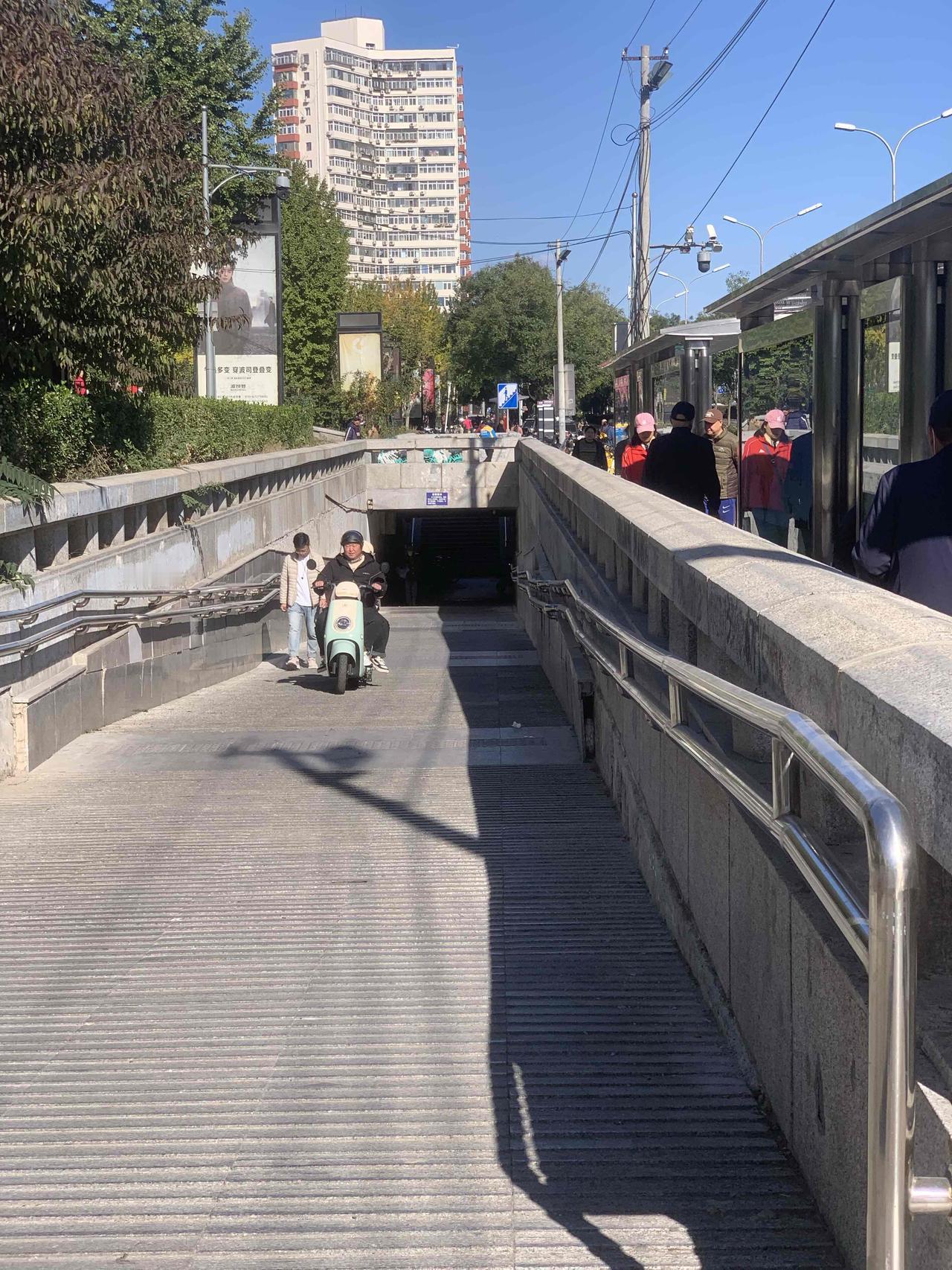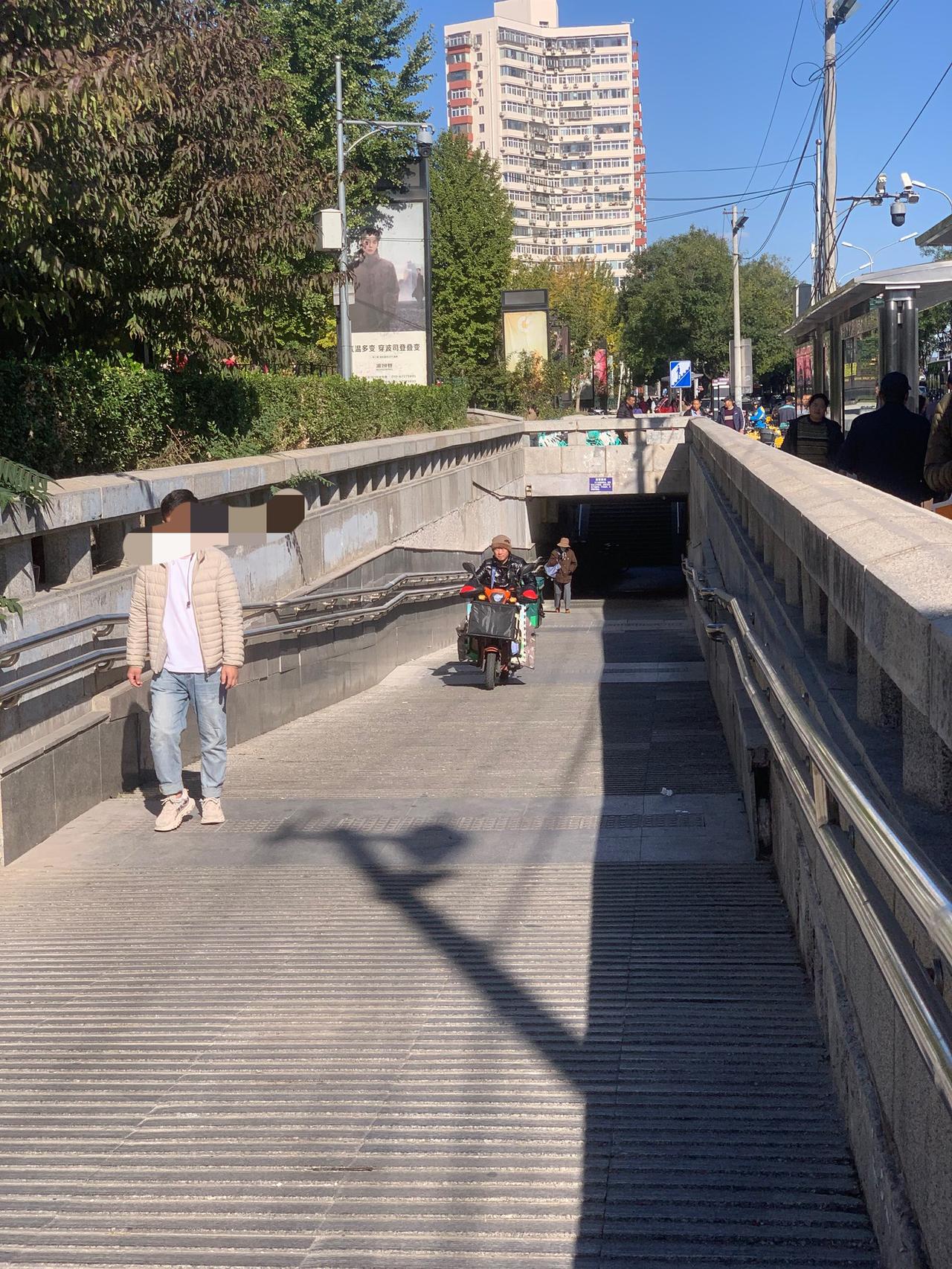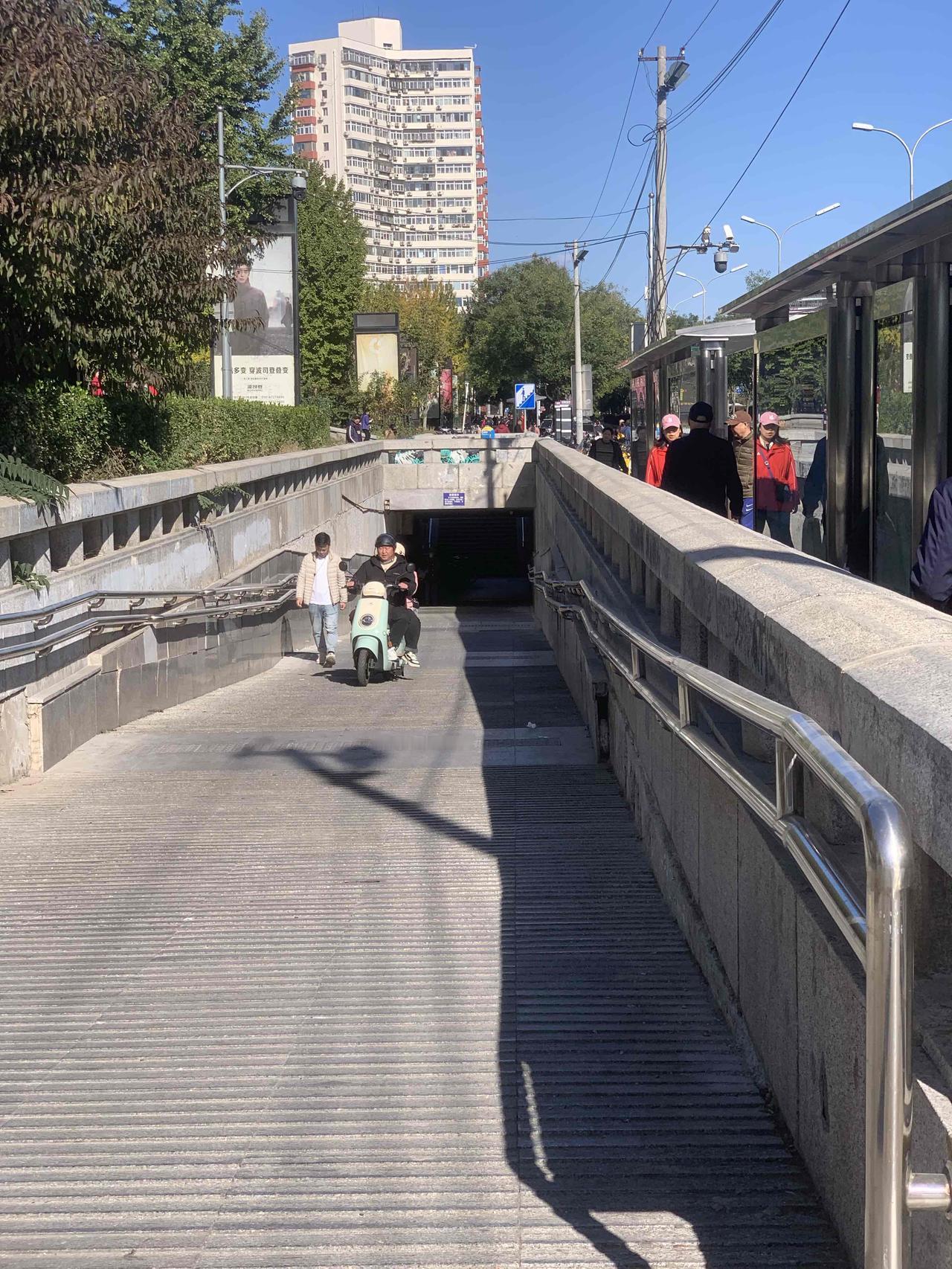北京百荣世贸商城前,地下通道入口处,明明有禁止电动车穿行的牌子,这些人却视而不见,大摇大摆地骑行,是不是素质太差了?对这些人应该予以重罚,每次罚款500元,估计他们就不敢了。 还有就是,过街天桥上,每天都能看到送外卖的,骑着电动车横冲直撞,威胁路人安全。 对这些人应该怎么办呢?
