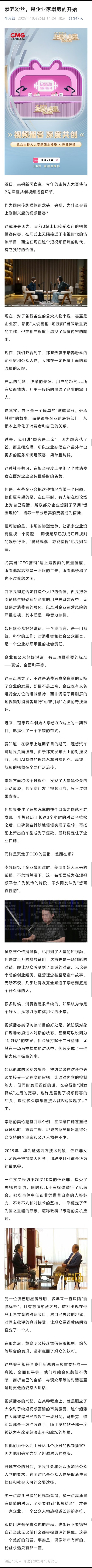 文章中写到:现在,对于各行各业的公众人物来说,甚至是企业家,都把“人设营销+短视频”当做最重要的工作,但在相当程度上忽视了深度内容的输出。