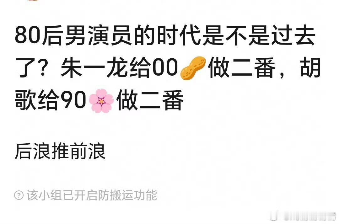 网友讨论,80后男演员时代是不是过去了,胡歌是特出不算吧?[允悲]