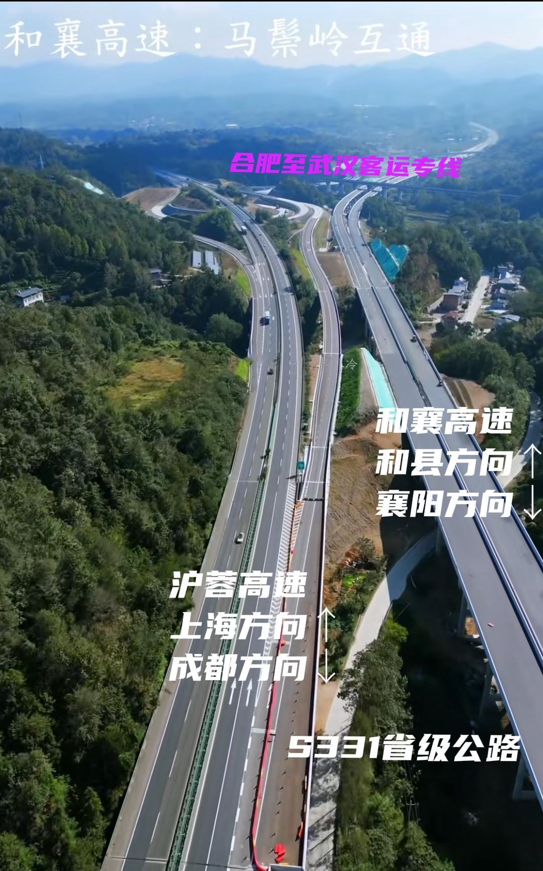 近年来华东地区最复杂的高速公路互通!和襄高速与沪蓉高速马鬃岭互通! 下面两张图就是最近一位博主航拍的图片,小编在方向上做了标注,由于地形以及线路的限制,该条高速公路并不是常规的一个互通,实际上是由两个互通共同组成的。 为了规避合肥至武汉客运专线,这里的高速公路互通设计非常的有特色,一般人看了这两张图片不看个几分钟,压根分不清楚哪条方向对哪条方向。 不过对于驾驶员来说,只需要根据导航指示通行就可以了,在设计的时候,设计师一定是绞尽脑汁才能想出如此复杂的解决方案。