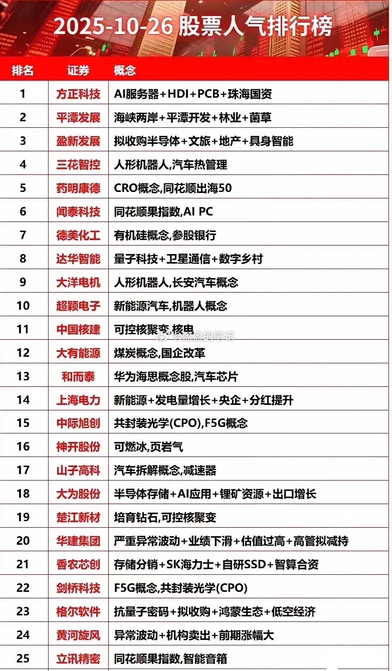 1. 方正科技:叠加AI服务器、HDI、PCB硬件及珠海国资概念,受益于AI硬件需求爆发与国企改革预期,技术与国资背景形成热度共振。