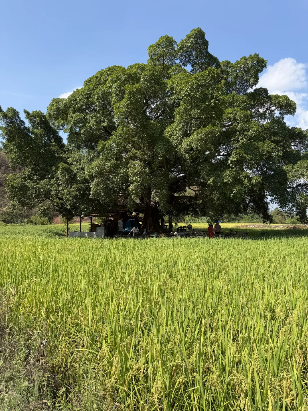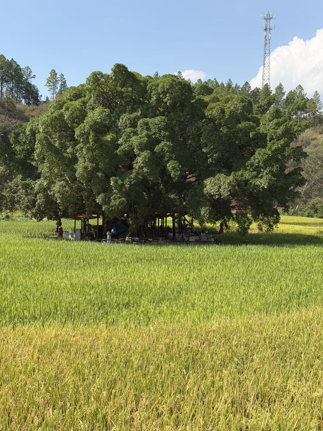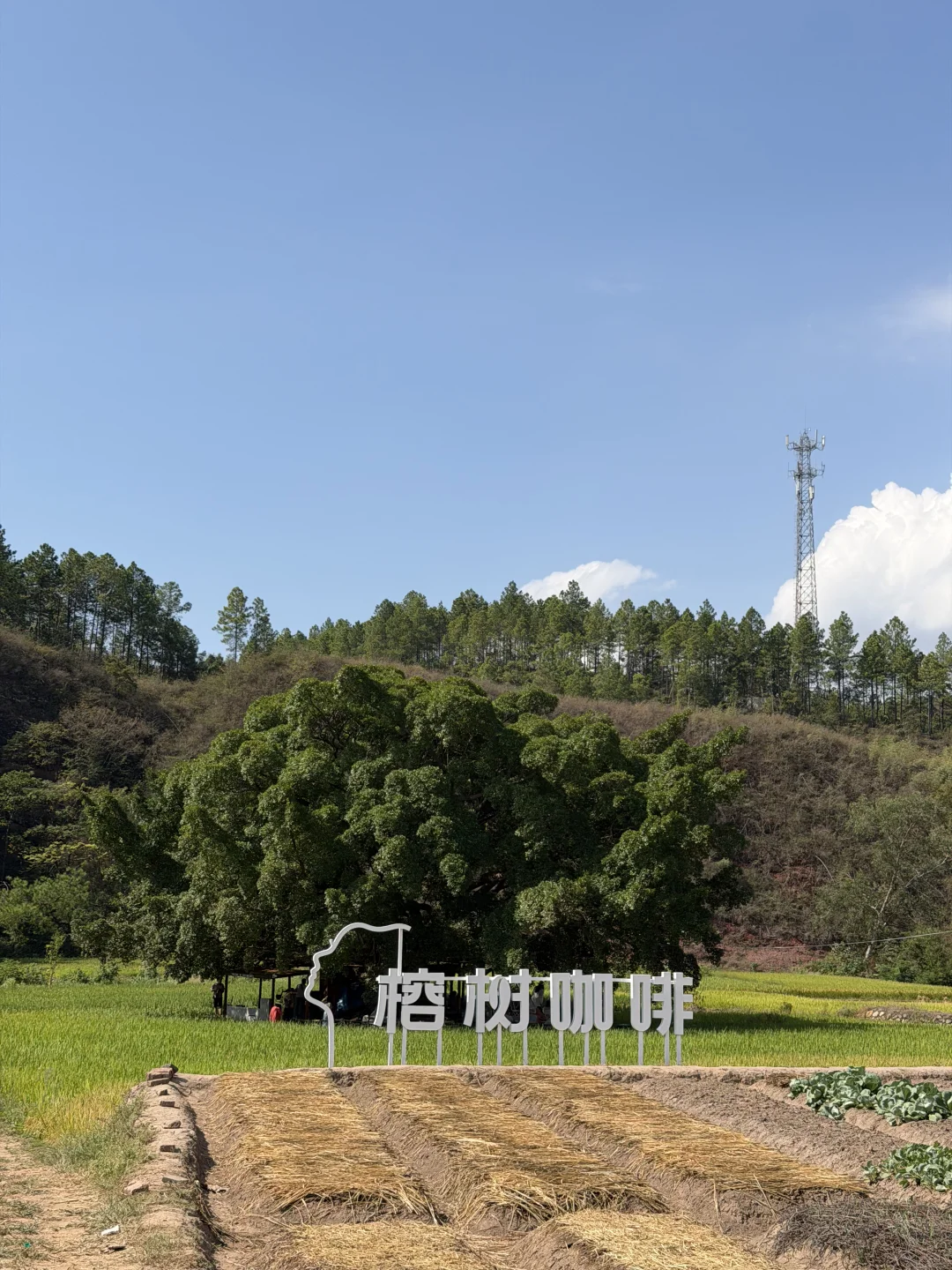 稻田里的榕树咖啡 今日live实况~ 没有空调但是有田野稻田里吹来的凉风 上午去的人也蛮多的~很适合带小朋友玩 接近大自然🍃在旷野自由自在 开车可以直达田头 榕树下很凉快 拍照很出片 🤳可以穿白色裙子 氛围感很足