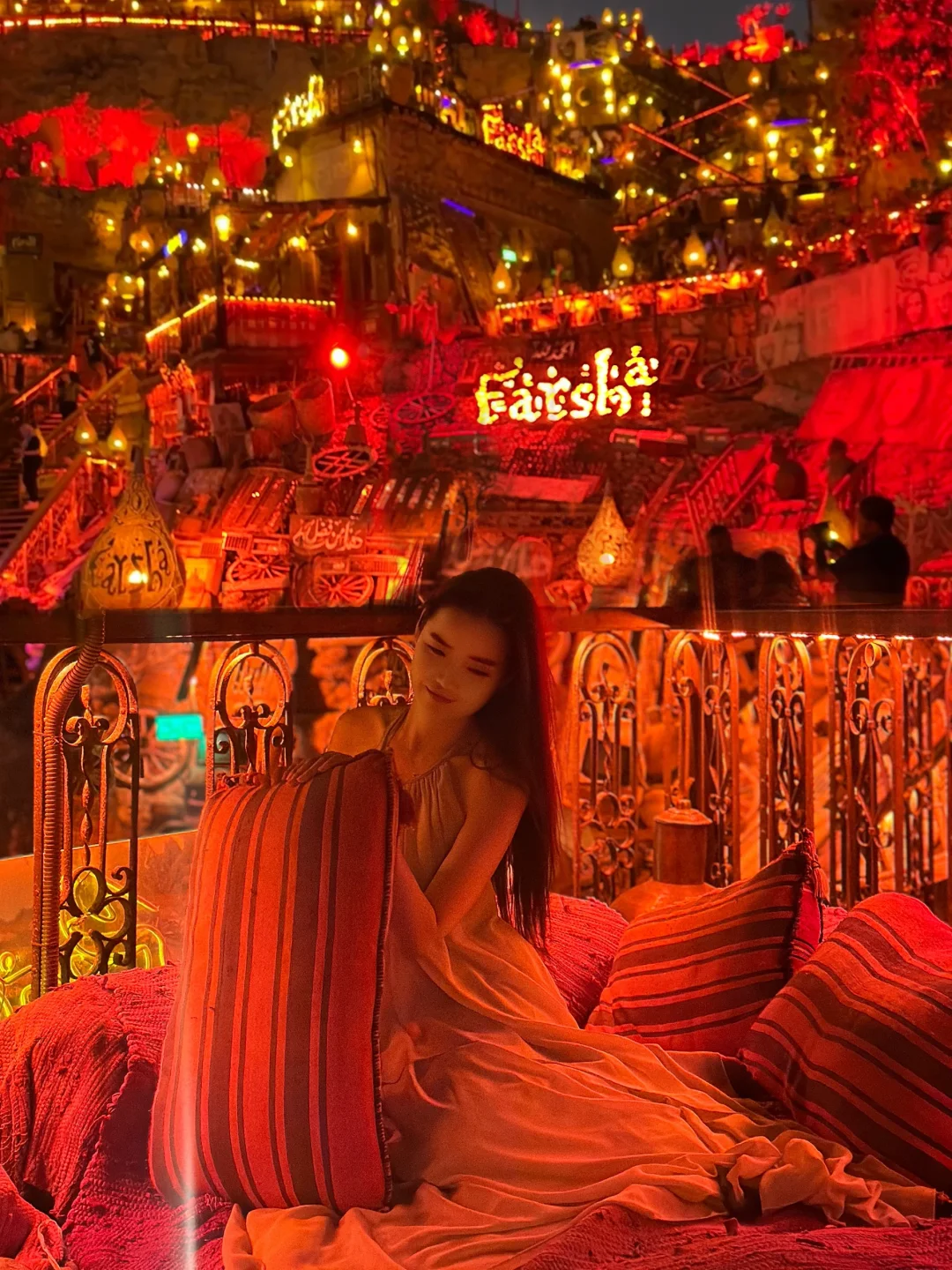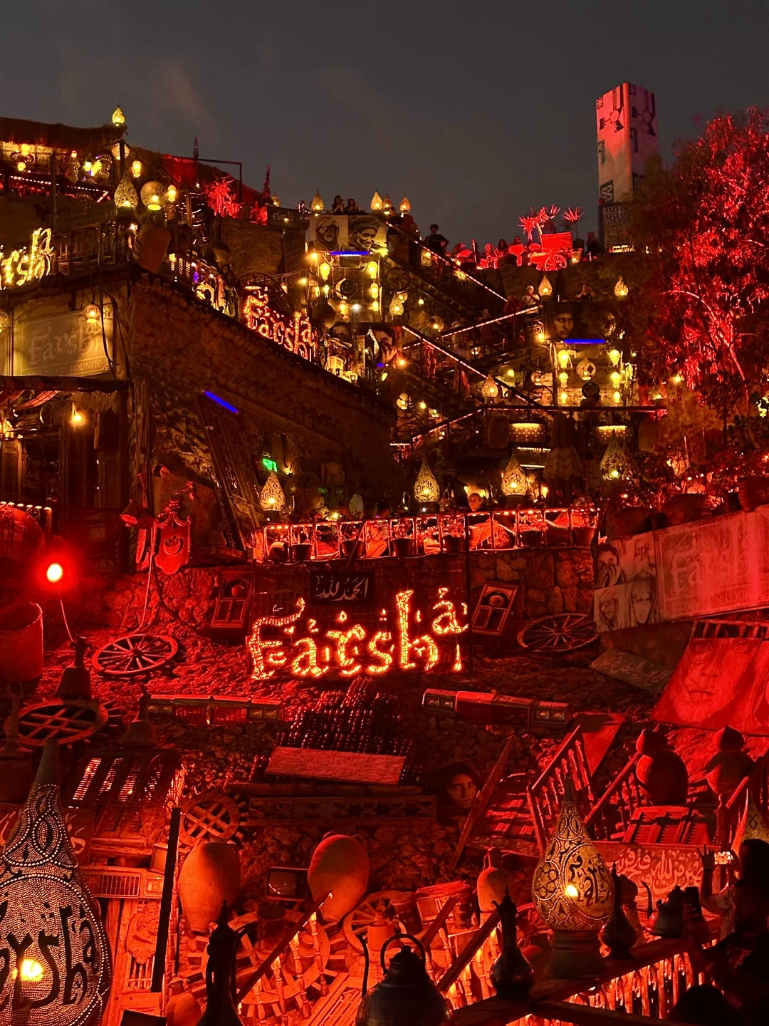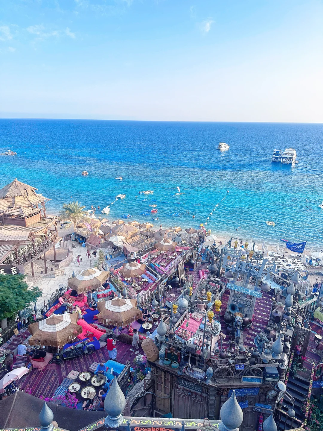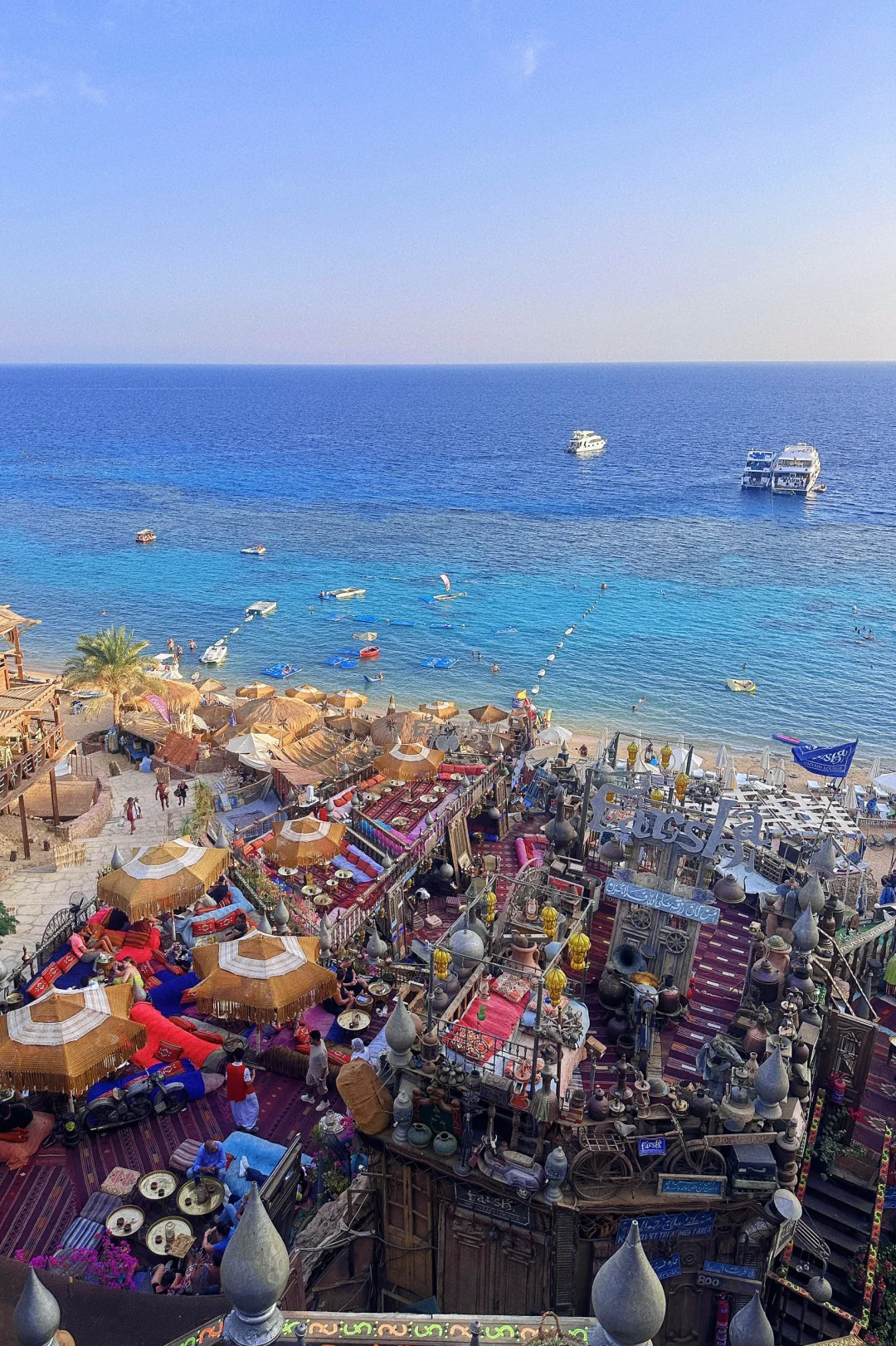 在西奈半岛的沙姆沙伊赫,面朝红海。建在陡峭悬崖边上的酒吧,现在也算是埃及🇪🇬地标建筑了,摩洛哥风格地毯,日落时分伴随着关灯那一瞬间,响起BGM,仿佛穿越到《寻梦环游记》,灯光点亮,氛围感直接拉满