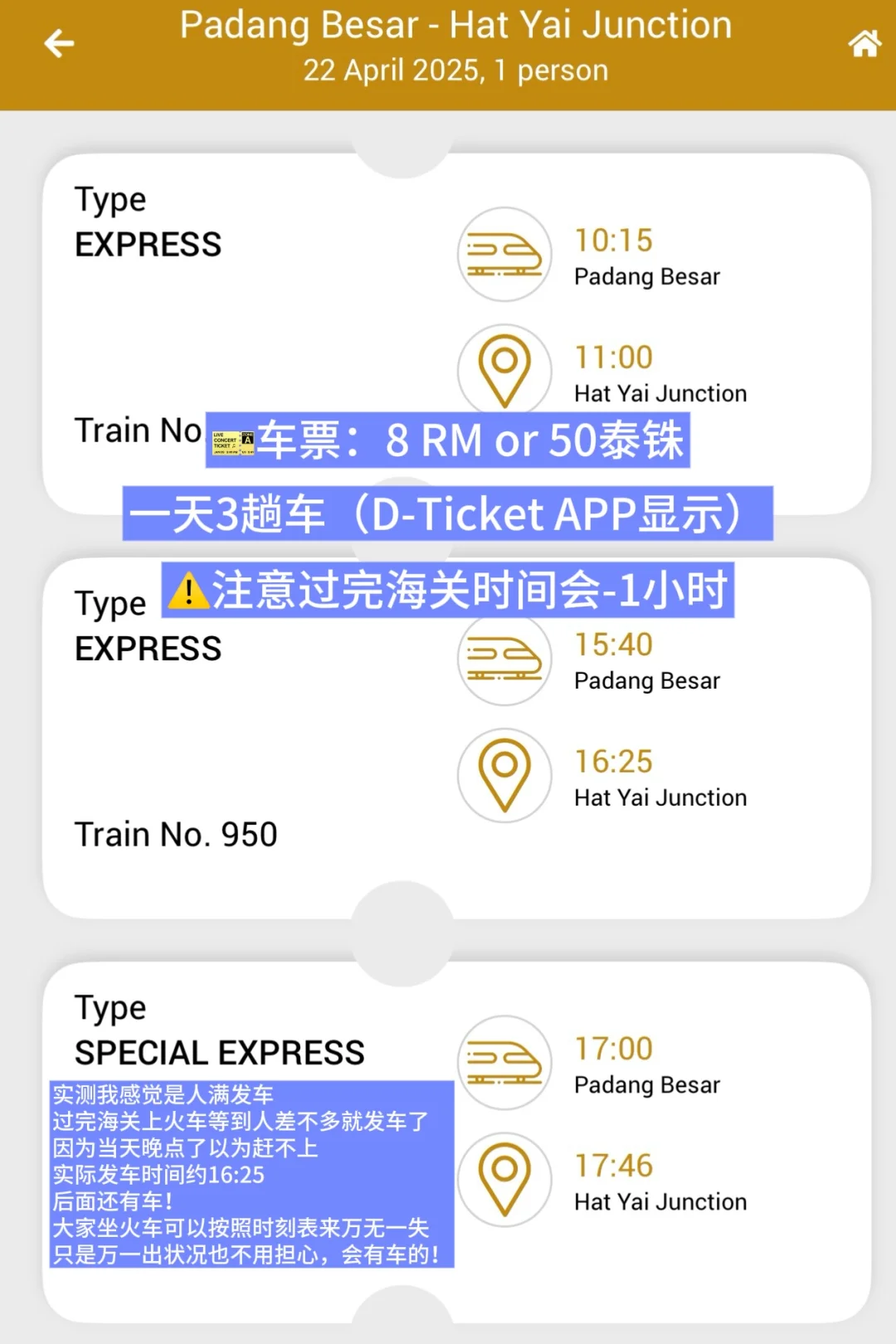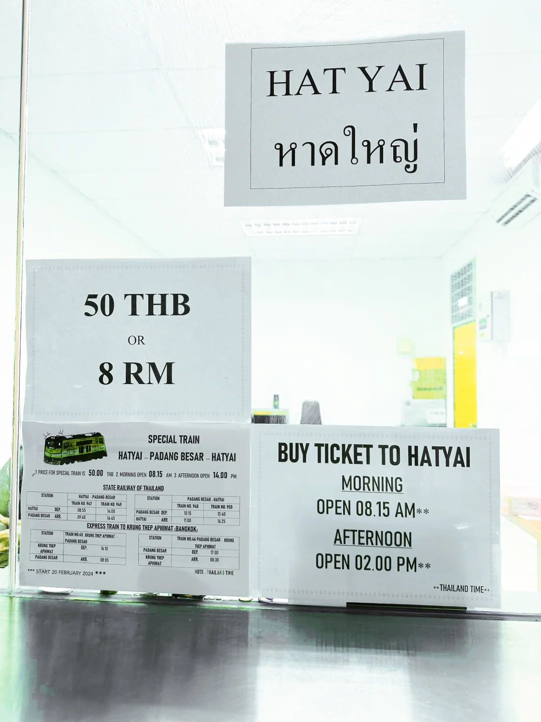 ⚠️Tips:之前搜攻略每天3班(10:15,15:40,17:00)实测我感觉是人满发车,火车站很小,一边去曼谷,一边去合艾,过完海关后工作人员会问你去哪,指引上车。因为当天晚点以为赶不上,实际发车时间约16:25,后面还有车!大家坐火车可以按照时刻表来万无一失,只是万一出状况也不用担心,会有车的!