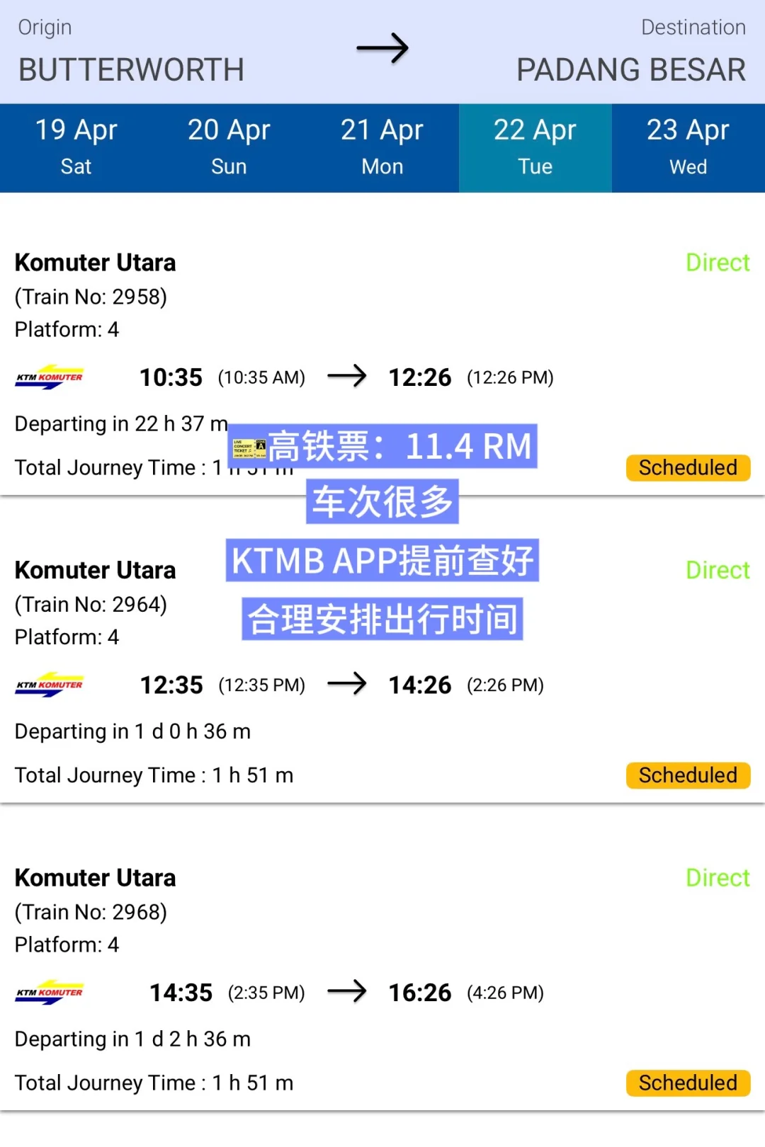 2️⃣高铁:Butterworth ➔ Padang Besar(边境)