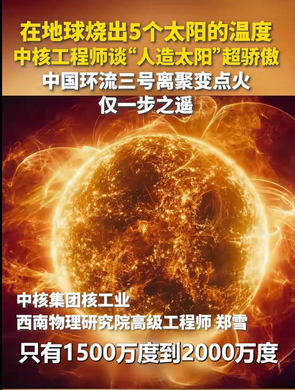 🔻太阳的核心温度只有1500万度到2000万度,而中国的人造太阳要在地球烧出五个太阳的温度!