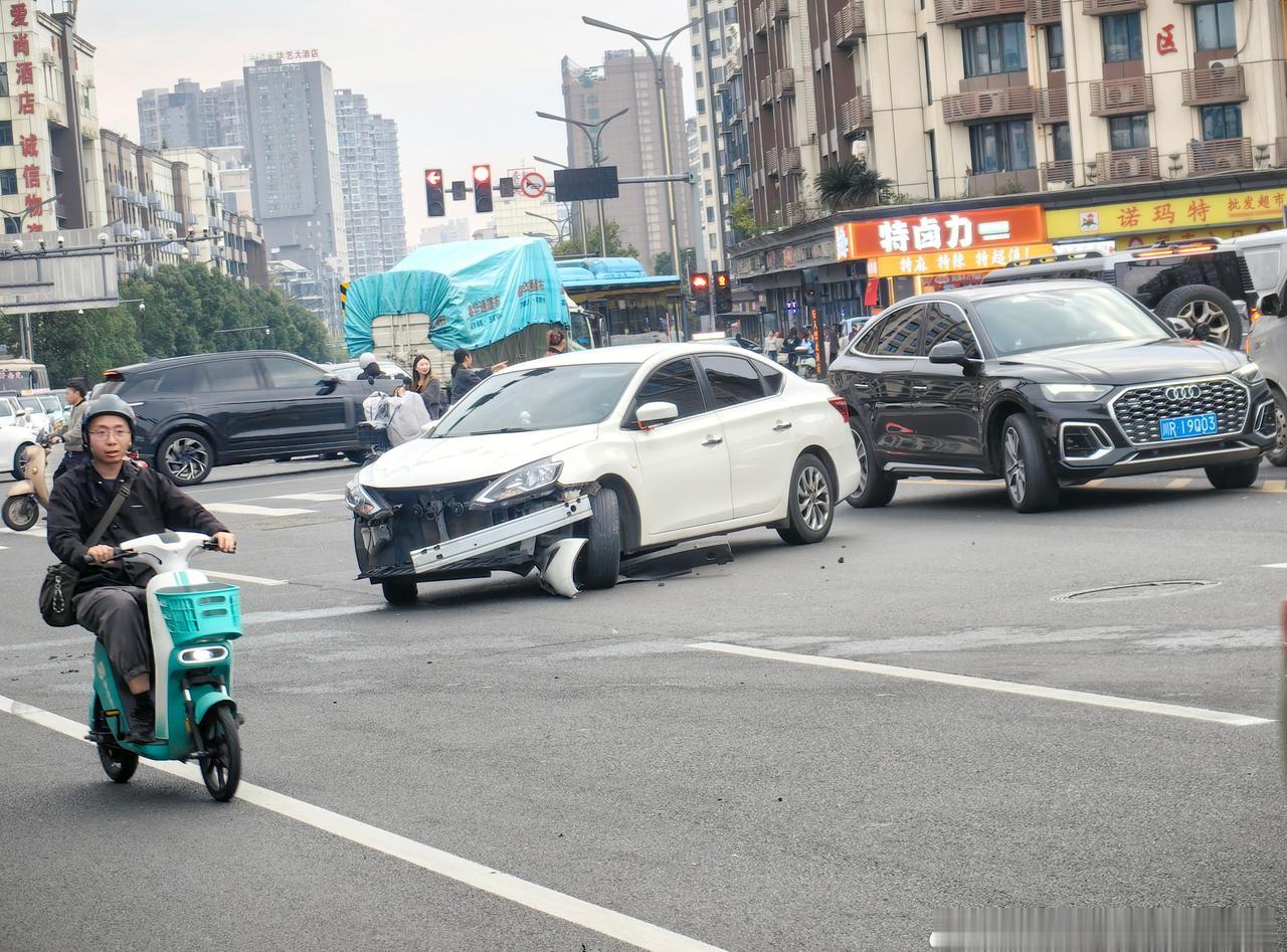 今天10月27号下午西华路一段红绿灯口处又发生一起两辆白色小轿车相撞交通事故。我当时看到撞得狠一点的车司机不在,估计受伤送往医院,具体谁的责任以交警裁决为准。我只想说我们开车的朋友还是悠着点,随时把安全放在首位。