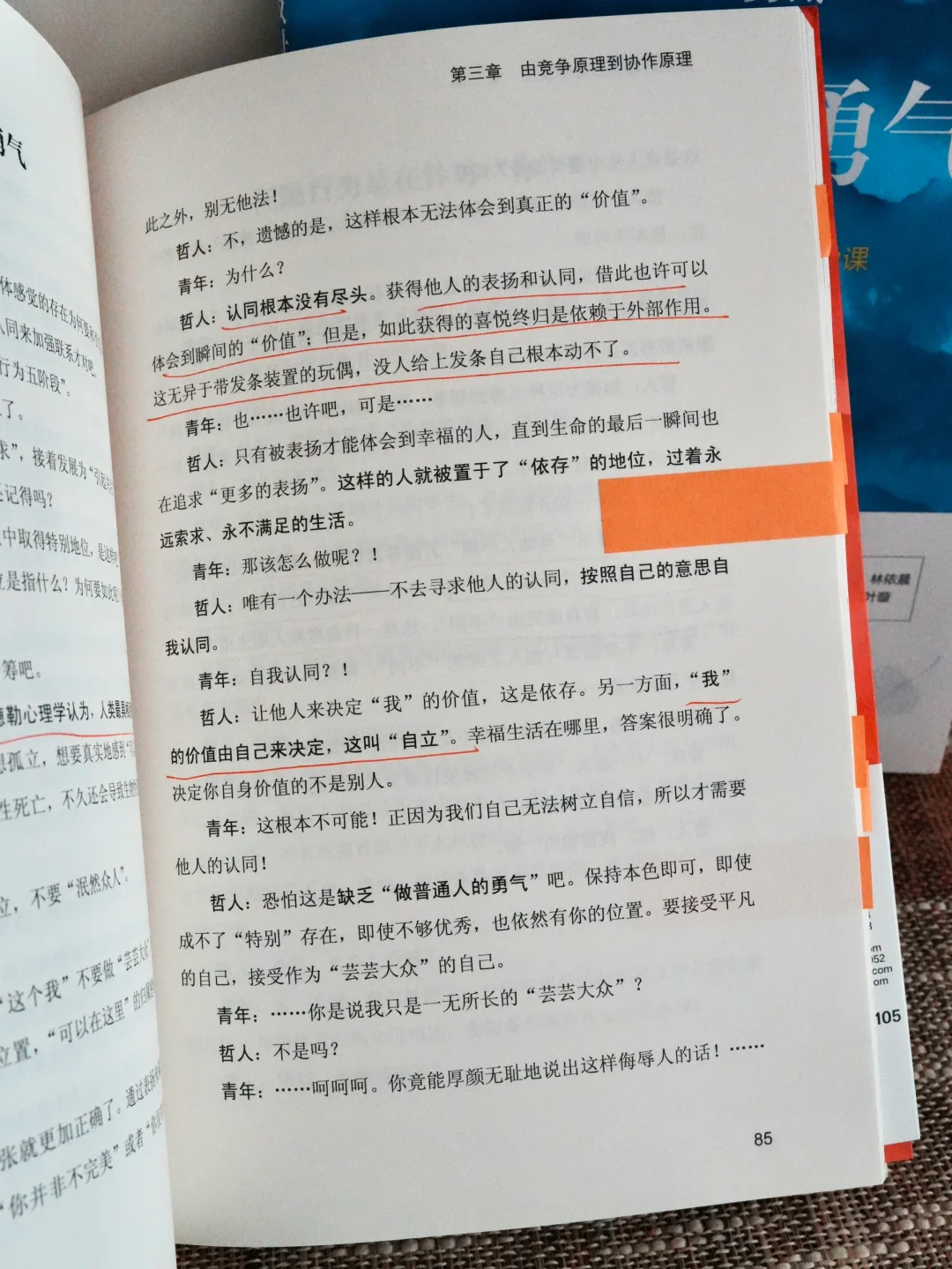 以对话体阐释阿德勒心理学,核心指出人的烦恼皆源于人际关系,真正的自由在于不畏惧他人评价、接纳被讨厌的勇气。