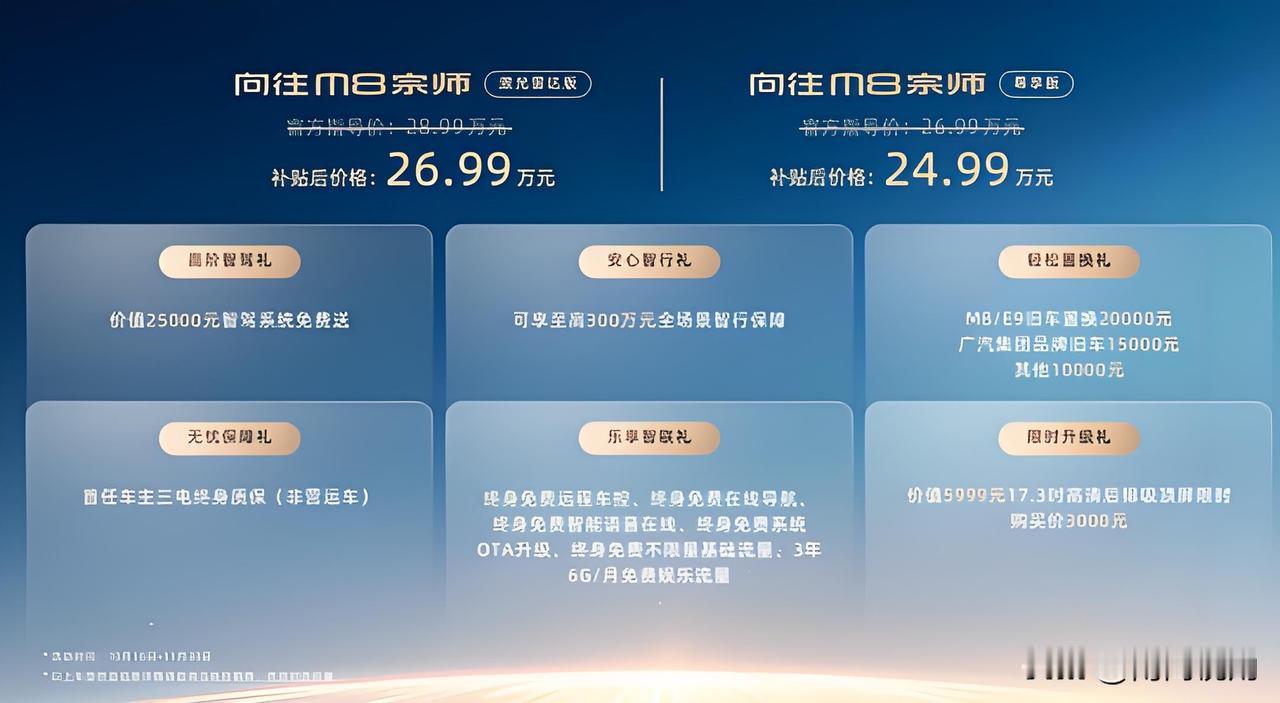 真正的华系豪华MPV,需植根东方文化,并以当代设计语言予以诠释。广汽传祺向往M8宗师系列,以东方审美为根基,演绎华系豪华MPV的气韵。外观大气不失雅致,矩阵式前格栅与流畅车身线条相得益彰;内饰融合真皮、木纹与金属,既沉稳又富于科技感,堪称企业形象的“移动名片”。 销量印证实力。自2017年首款上市,M8累计销量已突破45万辆,成为单车型销量最高的中国品牌豪华MPV。整个MPV家族销量更突破80万辆,稳居行业榜首。这样的口碑不仅体现产品可靠,更在商务接待中传递信赖——“大家都在用”,自然更具说服力。 智能驾驶从容应对各类场景。AVDC自适应车辆动态控制系统如同“影子车手”,整合发动机、变速箱与底盘,实现弯道自动减速、出弯加速,稳健与运动模式自如切换。12颗超声波雷达与4个全景摄像头加持的智能泊车系统,轻松应对立体车库与狭小车位,遥控泊出泊入,五分钟内完成停车。 空间布局灵活而从容。第三排配备同级唯一的220mm超长滑轨,在满员乘坐与超大储物之间自由切换。放倒后可提供1500L以上的行李空间,轻松容纳四个登机箱或山地自行车。第二排拥有480mm超长滑轨,配合电动调节、通风加热与SPA按摩功能,为客户带来头等舱级的乘坐体验。整车轴距达3070mm,即便身高一米八的乘客,膝部仍有两拳余裕,真正实现“坐得舒适,行得自在”。 综合价值同样出色。传祺向往M8保值率连续多年位居同级第一,为企业降低换车成本。华为智能座舱与L2+辅助驾驶让会议、导航轻松掌控。全系标配多气囊、车道保持与碰撞预警,全程守护商务出行。 总的来说就一句话,传祺向往M8宗师,以销量为背书,以智能驾驶与灵活空间为硬核支撑,融东方美学于豪华内涵,精准契合商务人士对形象、舒适、效率与灵活的全维需求,堪称华系豪华MPV的标杆之作。