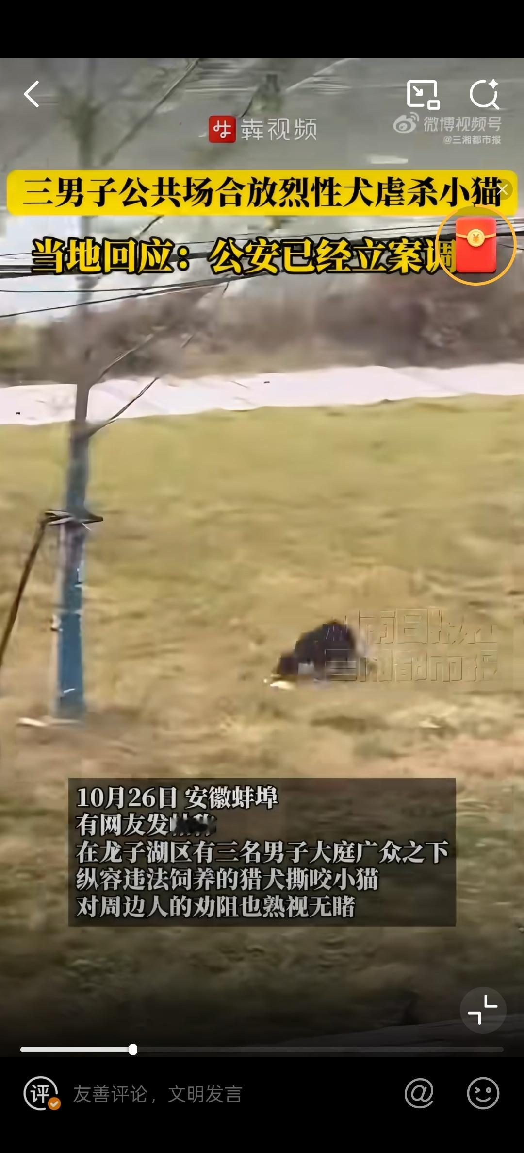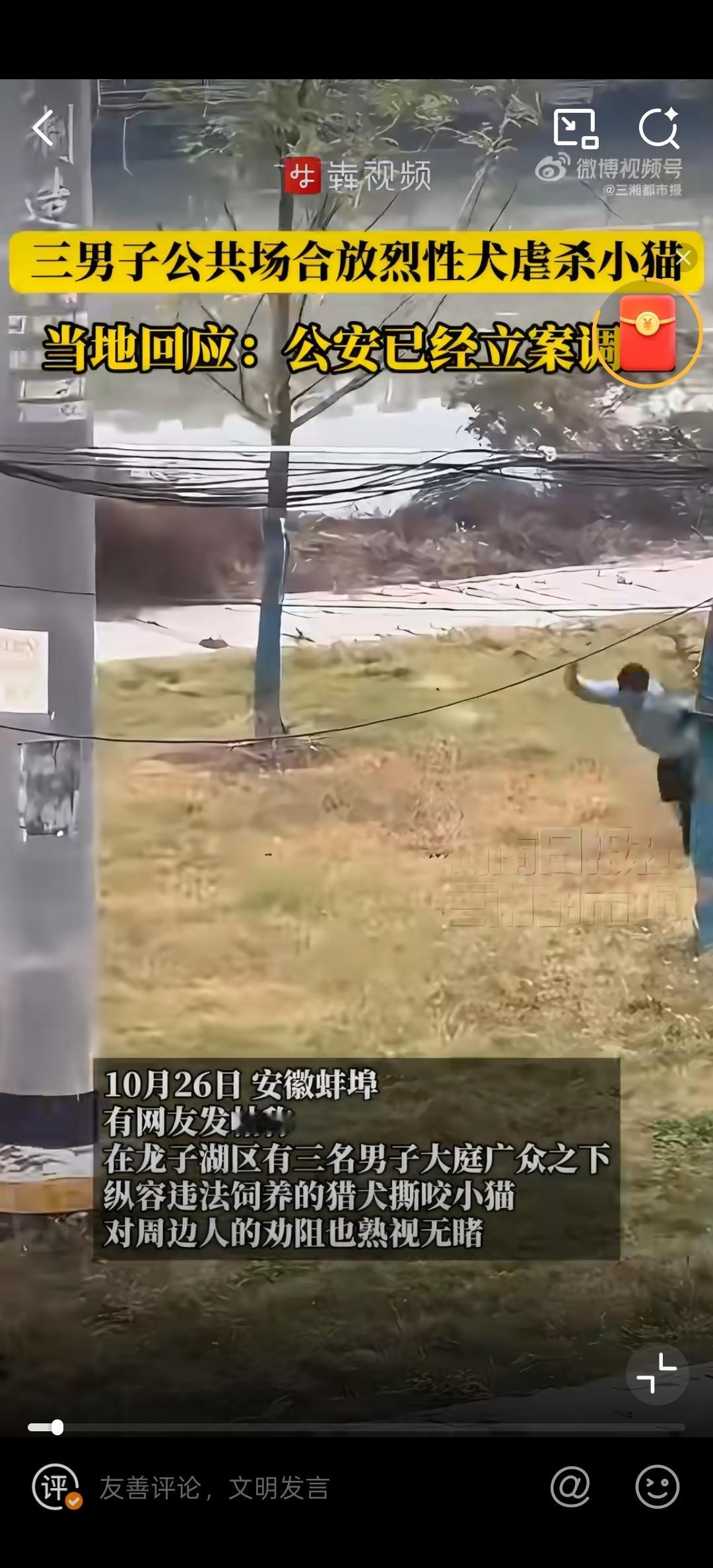 3男子在公共场合放烈性犬虐杀小猫见不得这种行为,太残忍了。而且这样训练出来的狗在城市里是很危险的。有可能会伤害人的。