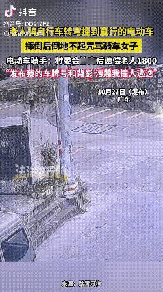广东,一位老人骑着自行车下坡,径直撞上了骑电动车的女子。老人坐在地上,对着女子破口大骂,指责女子骑车不看路,女子一气之下,骑着电动车离开了。然而,老人却将女子骑电动车离去的视频发布到网上,还曝光了女子电动车的牌号。网友:还好有监控,不然真的解释不清了! 当时女子骑着电动车正常直行,速度不快,还特意靠在非机动车道内侧,全程都在留意前方路况。 老人骑着自行车从旁边的斜坡冲下来,车速看着就挺急,车轮子都快碾到路边的石子了,连刹车的动作都没明显做出来,径直就撞在了电动车的侧面。 碰撞之后女子只是晃了一下,赶紧稳住车没摔倒,下意识还回头看了眼老人,可老人却直接坐在了地上,手里还攥着自行车的车把没松开,脸上带着怒气。 没等女子开口问“您没事吧”,老人就扯开嗓子骂了起来,说女子不长眼睛,骑车不看路,把他给撞了,唾沫星子都快溅到女子身上了。 女子被这突如其来的指责整懵了,明明是自己被撞,反倒成了过错方,试着解释了两句“是您从坡上冲下来的”,可老人根本不听,还越骂越难听,净是些难听话。 女子也是个暴脾气,被骂得火冒三丈,觉得跟不讲理的人说再多也没用,索性没再多说,拧动车把就离开了现场,估计是想眼不见心不烦。 谁知道老人转头就把女子离开的片段拍了下来,掐头去尾发到网上,还把人家的车牌号拍得清清楚楚,哭诉自己被撞了对方却肇事逃逸,博大家同情。 好在完整监控很快被网友扒了出来,真相一曝光,大家都炸了锅,纷纷替女子喊冤,指责老人颠倒黑白。 更让人意外的是,事后经村委会调解,女子最终赔偿了老人1800元。 监控虽还原了真相,可1800元的赔偿还是让人心里堵得慌。 年纪大该被尊重,但不是“倚老卖老”的底气,更不能成为颠倒黑白的借口,有理走遍天下,无理再闹也站不住脚。 遇到类似交通事故,不管责任在谁,千万别意气用事直接离开现场,哪怕被冤枉,也先报警留证,避免给对方“肇事逃逸”的口实。