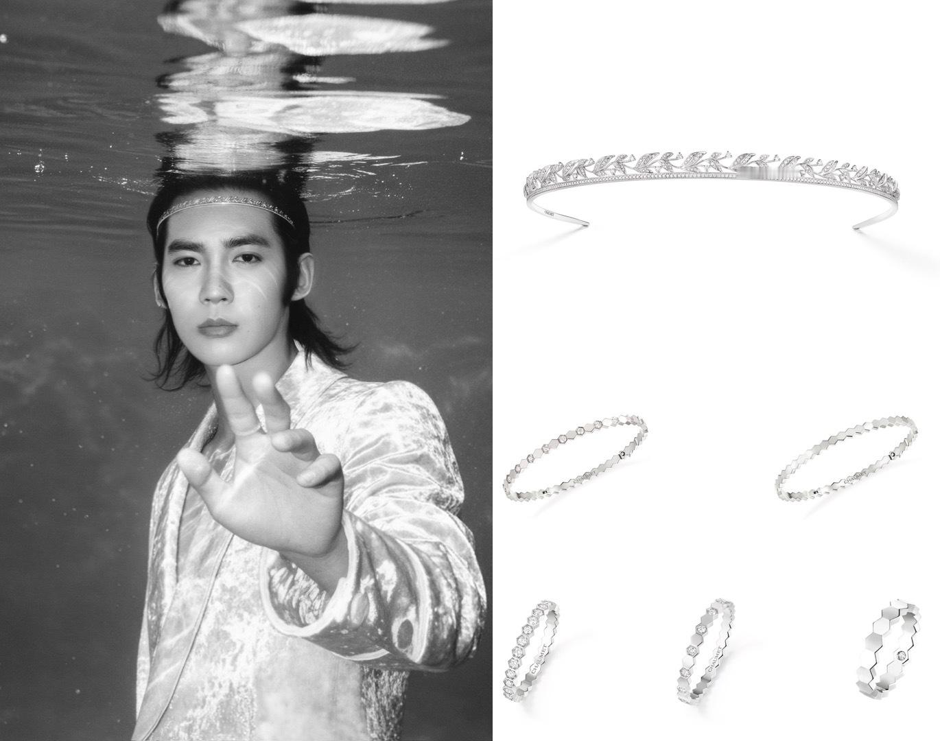 于适今日出席ELLE风尚大典造型大片,身着青果领暗纹绒面西服套装,佩戴CHAUMET Laurier月桂颂歌系列冠冕以及Bee de Chaumet系列珠宝,潇洒贵气,气场拉满,今天还受邀和Elle主编一起为活动红毯开场咯👏
