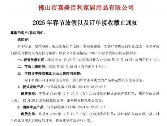 广东佛山是泛家居产业大市,全市的泛家居产业年产值超1.5万亿。受市场大环境影响,今年大多数企业春节放假时间偏早,有些企业元旦就开始放春节假。还有的陶瓷企业,12下旬已经开始分批放假。