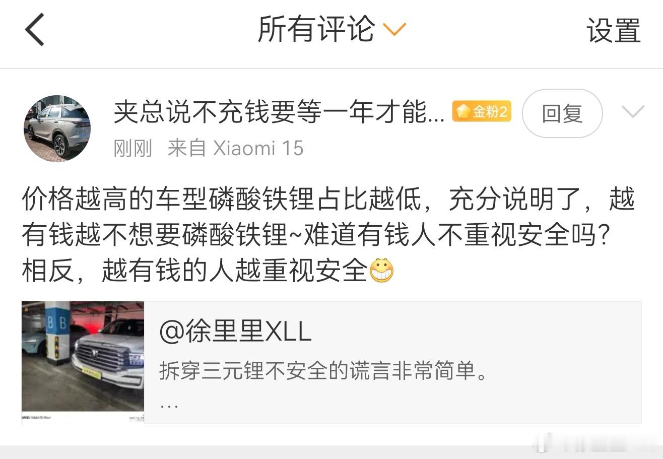 高端品牌的消费群体其实也并不在乎你用磷酸铁锂还是三元锂。