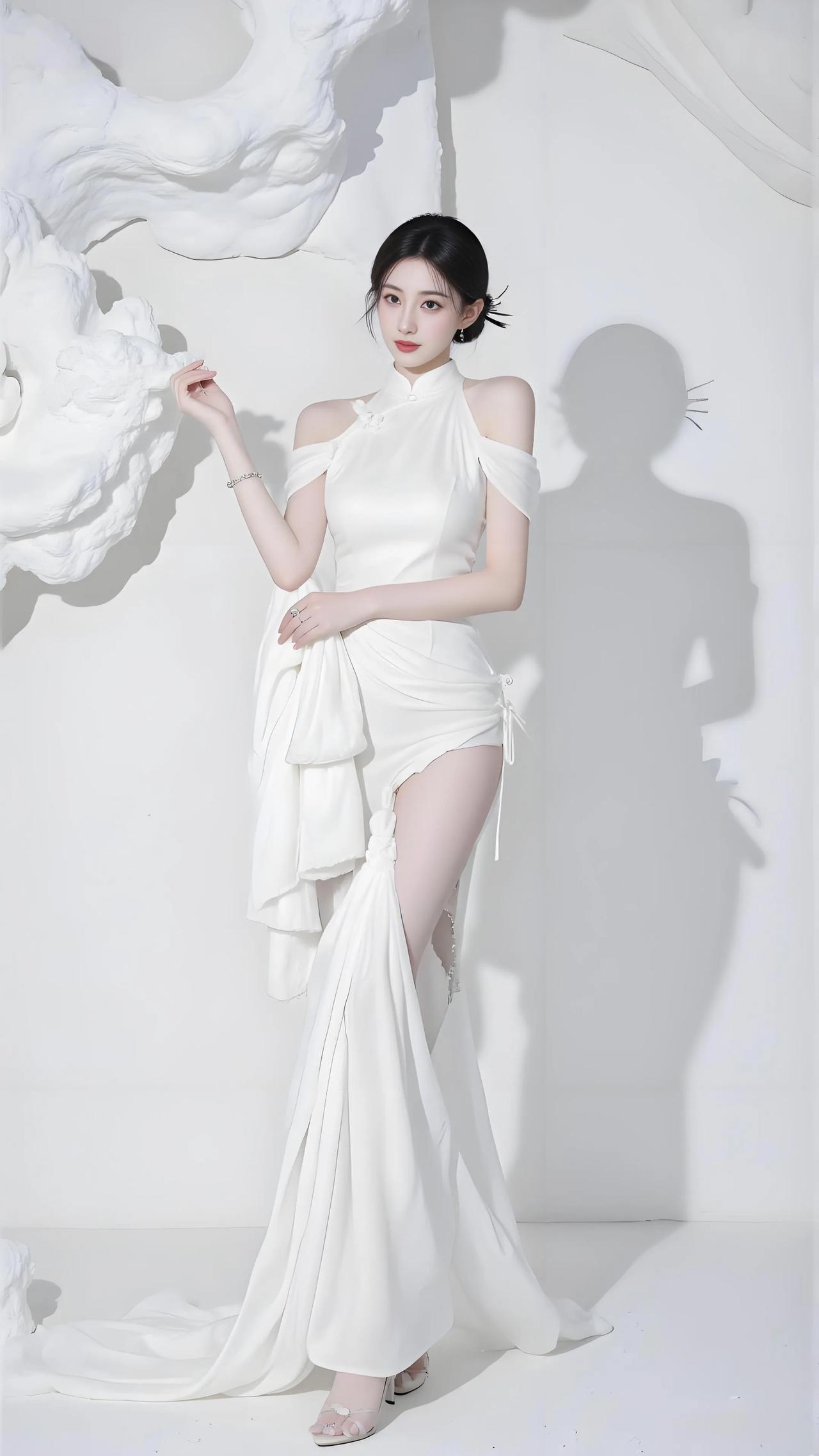 水墨晕开影自幽,露肩凝雪倚枝柔。 裙裾轻曳生兰蕙,国韵风华入画流。 兰亭灯映玉肩斜,袖卷云烟绾鬓花。 立领含章凝古意,翩然倩影漫笼纱。 云纹雕壁泻轻纱,系带随风拂鬓霞。 开衩生香移步缓,吴侬软语醉流霞。旗袍 旗袍美人 旗袍穿搭
