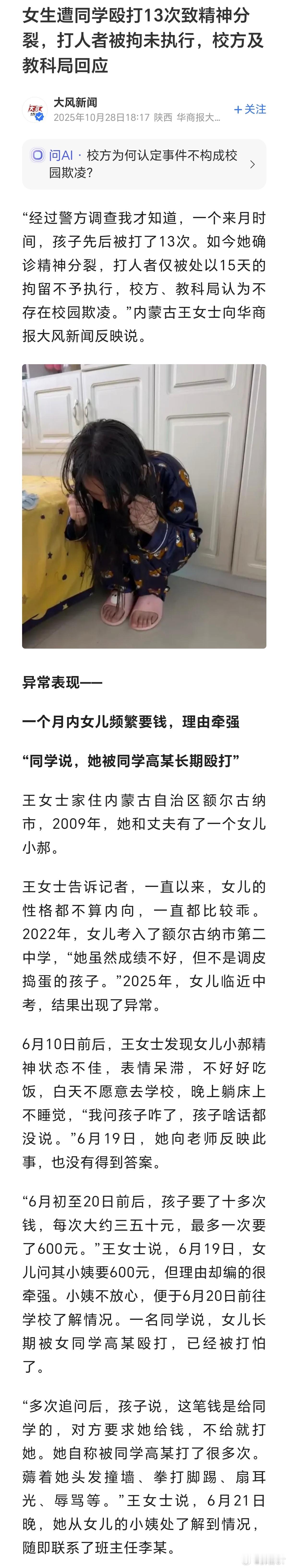 女生遭同学殴打13次确诊精神分裂