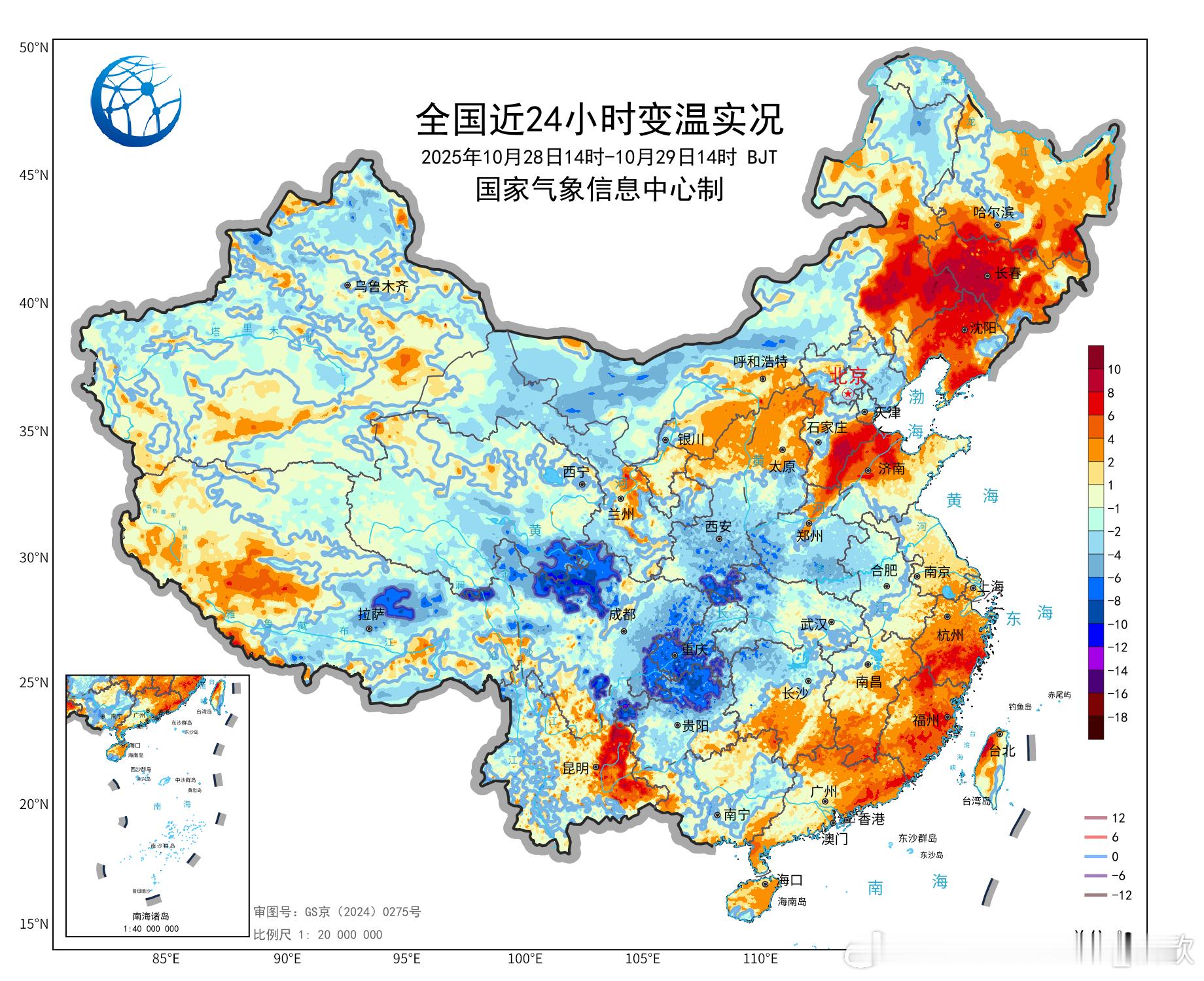 【气温起伏】今天气温的升降,主要是两个因素,冷暖气流导致的平流变化,以及天空状况,导致光照加热的增减变化。这也是影响气温的两个最核心的因素。