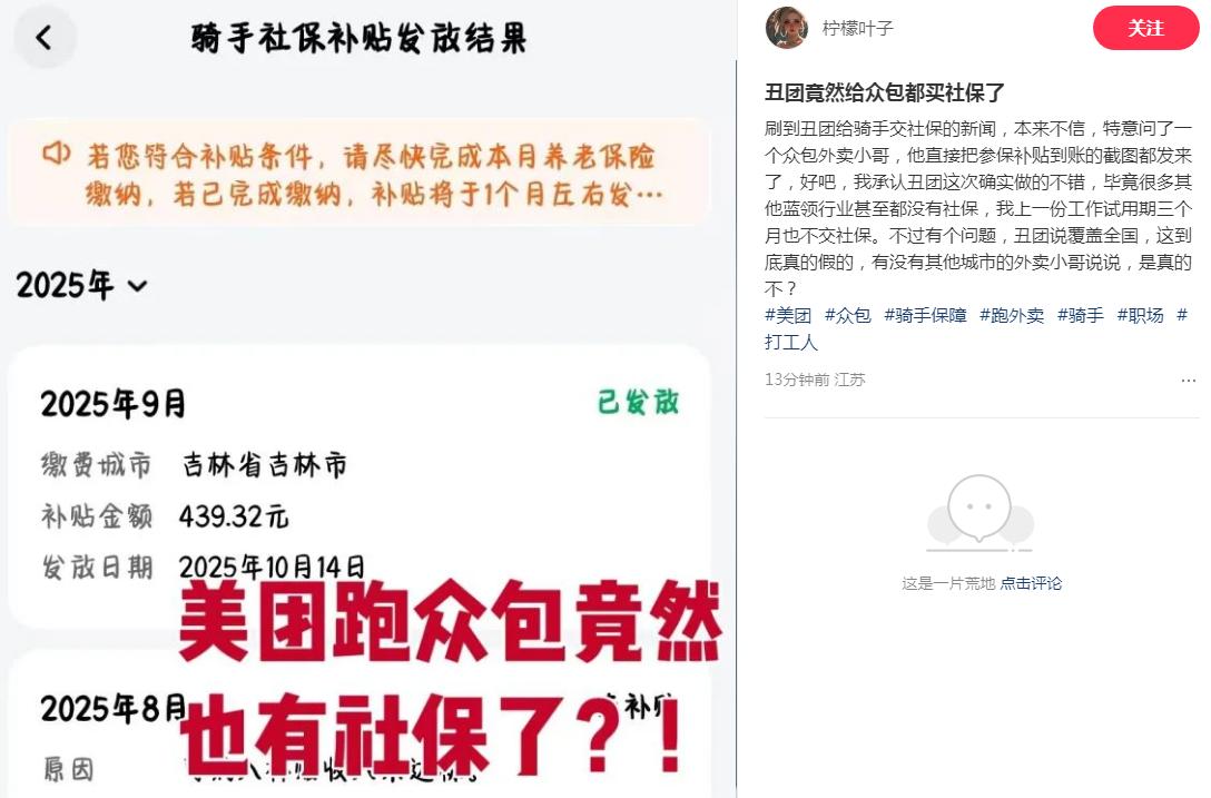 有点意外,美团竟然肯下血本给全体骑手交社保,这下反将了东哥一军。 就在最近,美团宣布社保补贴正式覆盖全国,并向全部骑手开放。值得一提的是,不管你是全职还是兼职,养老、意外、工伤险统统给上,一次性覆盖全国几百万骑手,不少骑手小哥都已经领了好几个月的社保补贴了。 这意味着美团创造了一个记录,第一个给所有骑手安排社保的平台,也让骑手成了全国第一个社保全面覆盖的行业,百万骑手小哥成了灵活就业群体里保障最好的一群人。 说美团下血本,真不是随便说说。目前美团上月均活跃的骑手超过300万,按目前多地骑手月均收到的500块补贴来算,一个月支出15亿,一年下来就是180亿打底。等于是美团把去年净赚的一半利润都拿出来给骑手交了社保,确实没得说。 都知道京东一开始也想这么干,可一算账,这得把京东一年赚的钱都赔进去,后来东哥发话,只给全职骑手交社保,而且设定了严格的在线时长和派单门槛。哪怕到现在,大概也只覆盖了15万骑手,大多京东骑手的社保至今还在“裸奔”。 该说不说,美团的确存在不少问题,但这波确实干的漂亮,骑手小哥一年多领6000块补贴,对普通家庭而言省了一大笔。不过也没必要因此就嘲讽东哥,都是想让兄弟们少吃点苦,有了美团更普惠的社保方案带路,相信东哥很快也能让京东的骑手们沾沾光的。