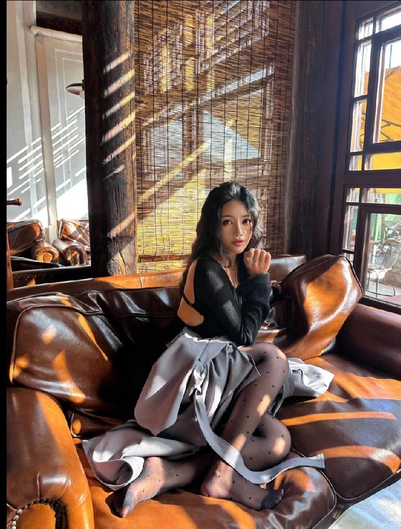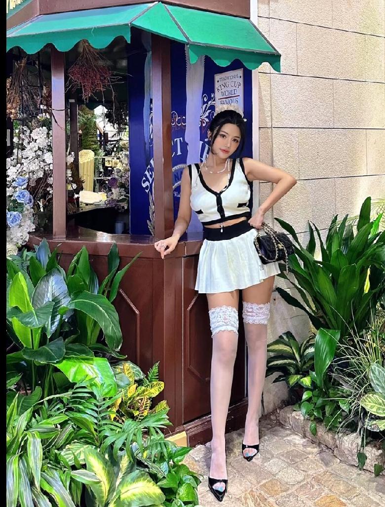 美图欣赏,看图写诗 《黑衣倩影》 套装显雅姿,倩影立芳丛。 青丝随风逸,明眸