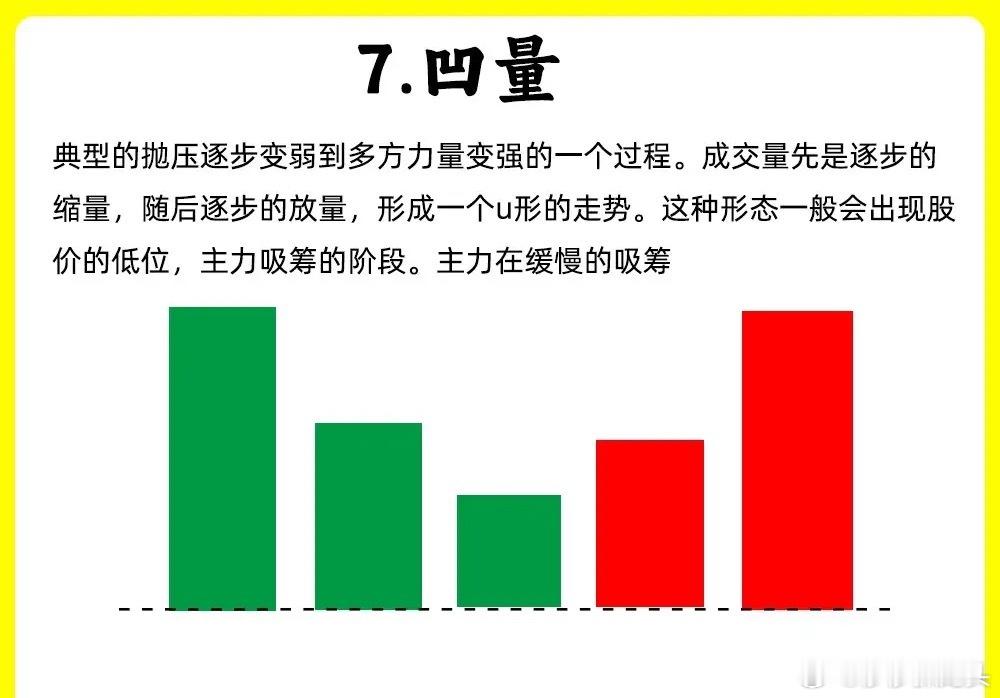 这个典型的抛压逐步变弱到多方力量变强的一个过程。成交量先是逐步的缩量,随后逐步的放量,形成一个u形的走势。这种形态一般会出现股价的低位,主力吸筹的阶段。主力在缓慢的吸筹。