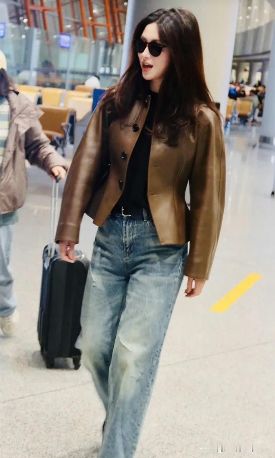 朱珠这身机场look真是绝了! 短款皮衣一穿,墨镜一戴,走路带风的气场瞬间拿捏! 又美又飒这个词简直就是为她量身定做的,明明只是随意站在那儿,整个候机厅都成了她的秀场。 这种毫不费力的时髦最致命,皮质光泽和轮廓线条都恰到好处,既显比例又不失高级感。 她真是把那种“随便穿穿就赢很大”的氛围玩明白了,不愧是行走的画报,每次私服都能美出新境界!