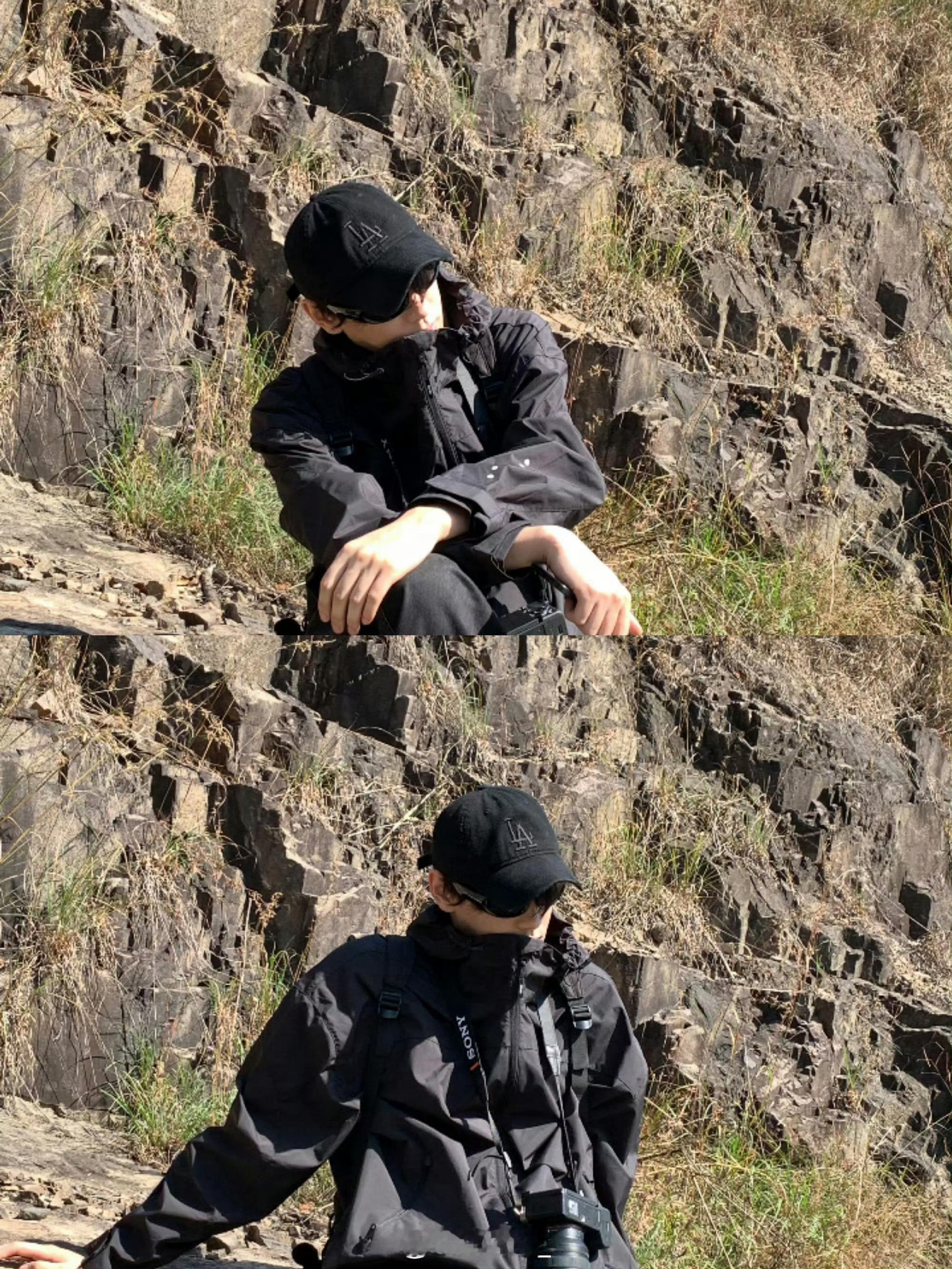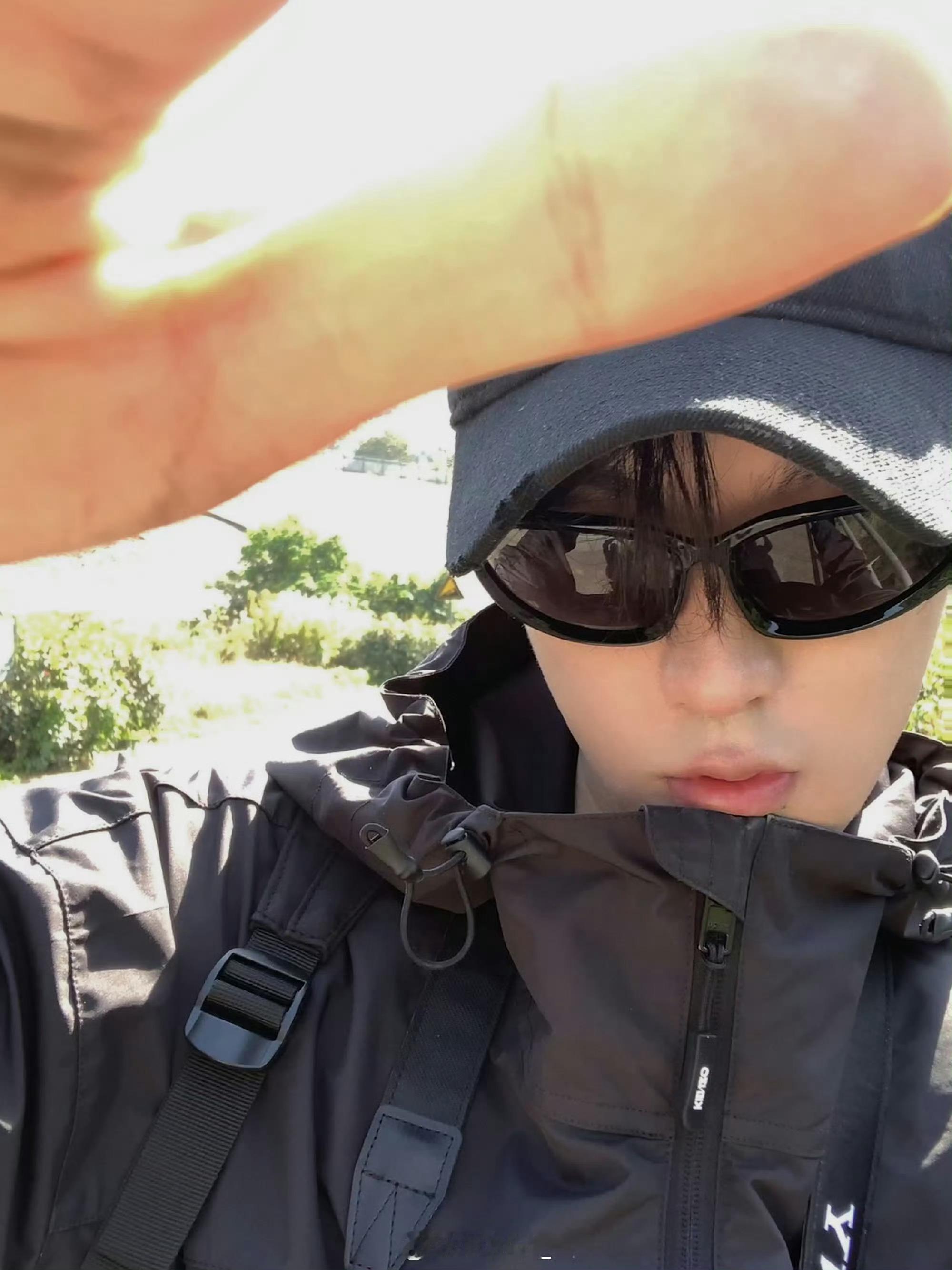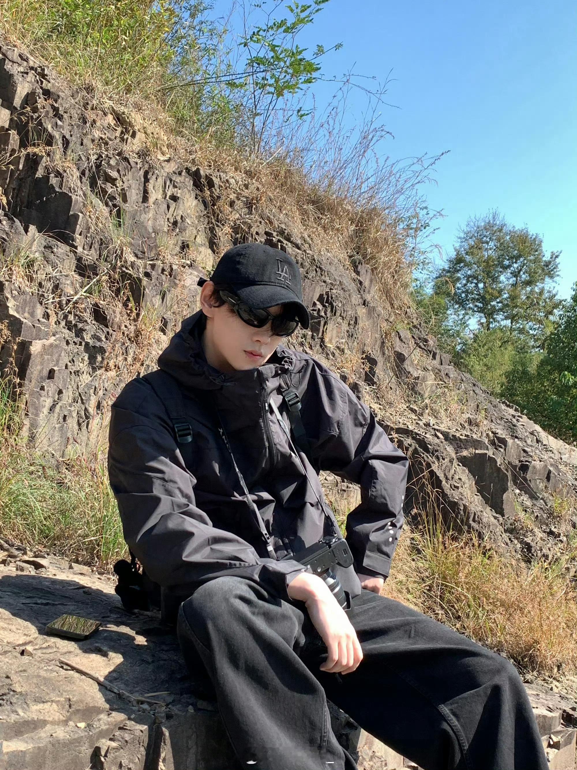 身穿KENZO 夹克外套,佩戴 Parim 墨镜,脚踏 Salomon 跑鞋,九九重阳,登高望远,All black 纯黑酷 Boy 登场😎🖤田栩宁allblack登高