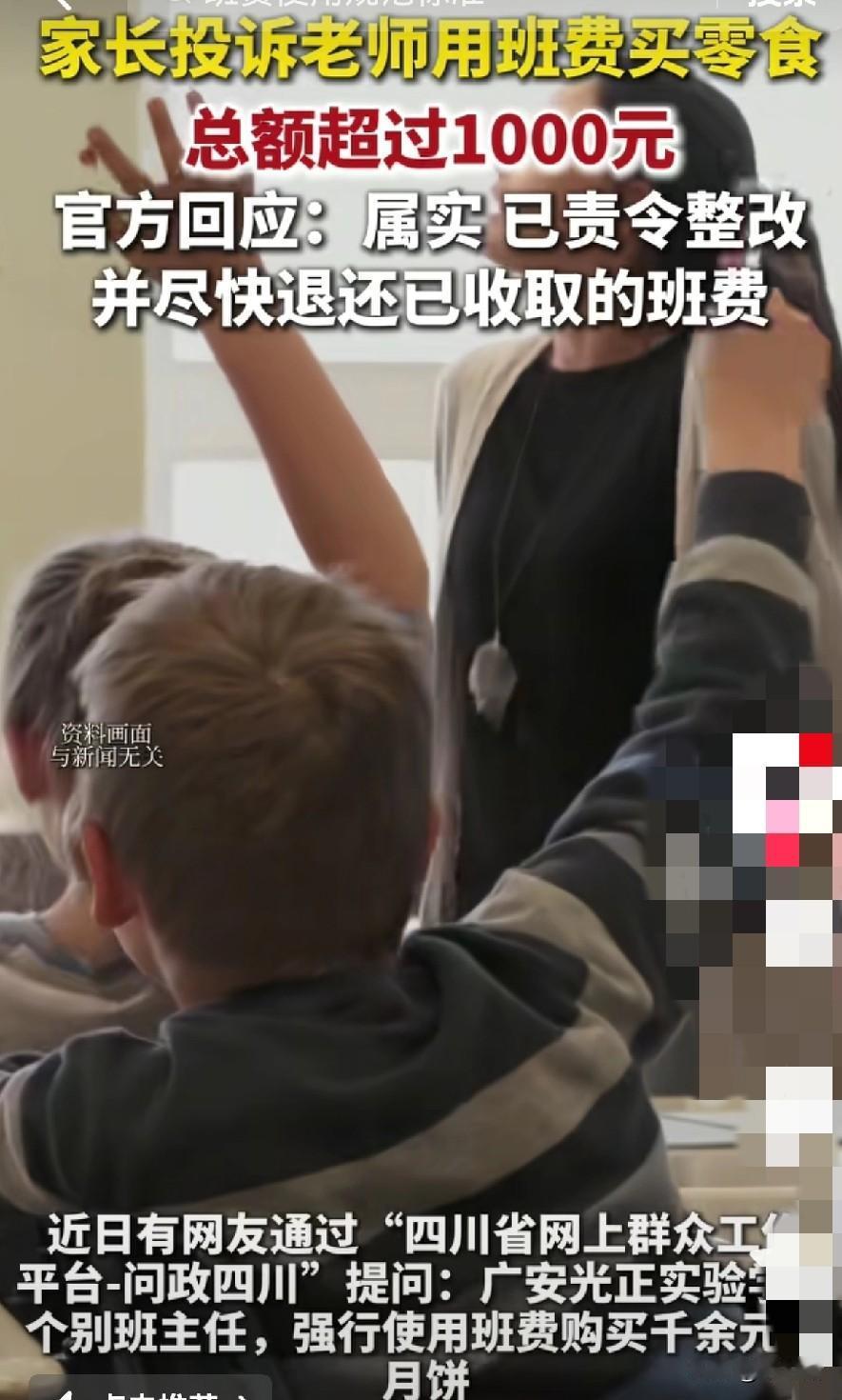 近日,四川广安一所学校,老师拿班费买了上千的零食,在课堂分享给孩子们吃,结果被家